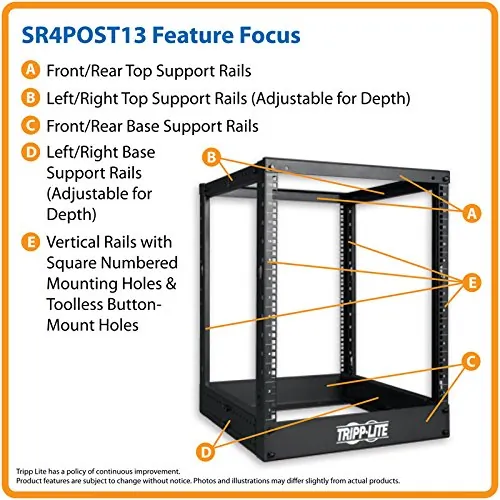 Be prepared for the growth of your business with the Tripp Lite SR4POST13 13U 4-Post Open Frame Rack Cabinet. Using open frame racks that can be bolted together is a cost-effective way to expand your storage space. Each Tripp Lite Rack is lightweight, easy to assemble and can support 1000 lbs of equipment. Add additional racks as your business grows.