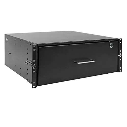 Rack-Mount Drawer for Storing Essential Rack Equipment Accessories Keeps tools, cables, notes, computer discs, etc. at your fingertips Ideal for quick storage in data center, wiring closet and back office racks Maximum load capacity of 50 lb.Heavy-Duty Steel Construction Designed for Long Life Made from durable cold-rolled steel with black powder-coated finish Slides smoothly out of the way into rack when not in use Locks securely with included keys to protect contents4U Drawer Mounts in EIA-Standard 19 in. 2- or 4-Post Rack Mounting hardware included for quick installation4U rack-mount drawer with maximum load capacity of 50 lb.Locks securely with included keys to protect contentsMade from cold-rolled steel with black powder-coated finishMounting hardware included for rack installationSlides smoothly out of the way into rack when not in usePackage Includes SRDRAWER4U SmartRack 4U Locking Rack-Mount Storage Drawer (2) Keys Rack-mounting hardware Installation guideAccessories Type Rack ShelvesPHYSICAL Shipping Dimensions (hwd / cm) 5.99 x 52.48 x 76.48 Shipping Weight (kg) 4.99 Unit Dimensions (hwd / cm) 17.68 x 43.74 x 45.24 Unit Weight (kg) 9.50