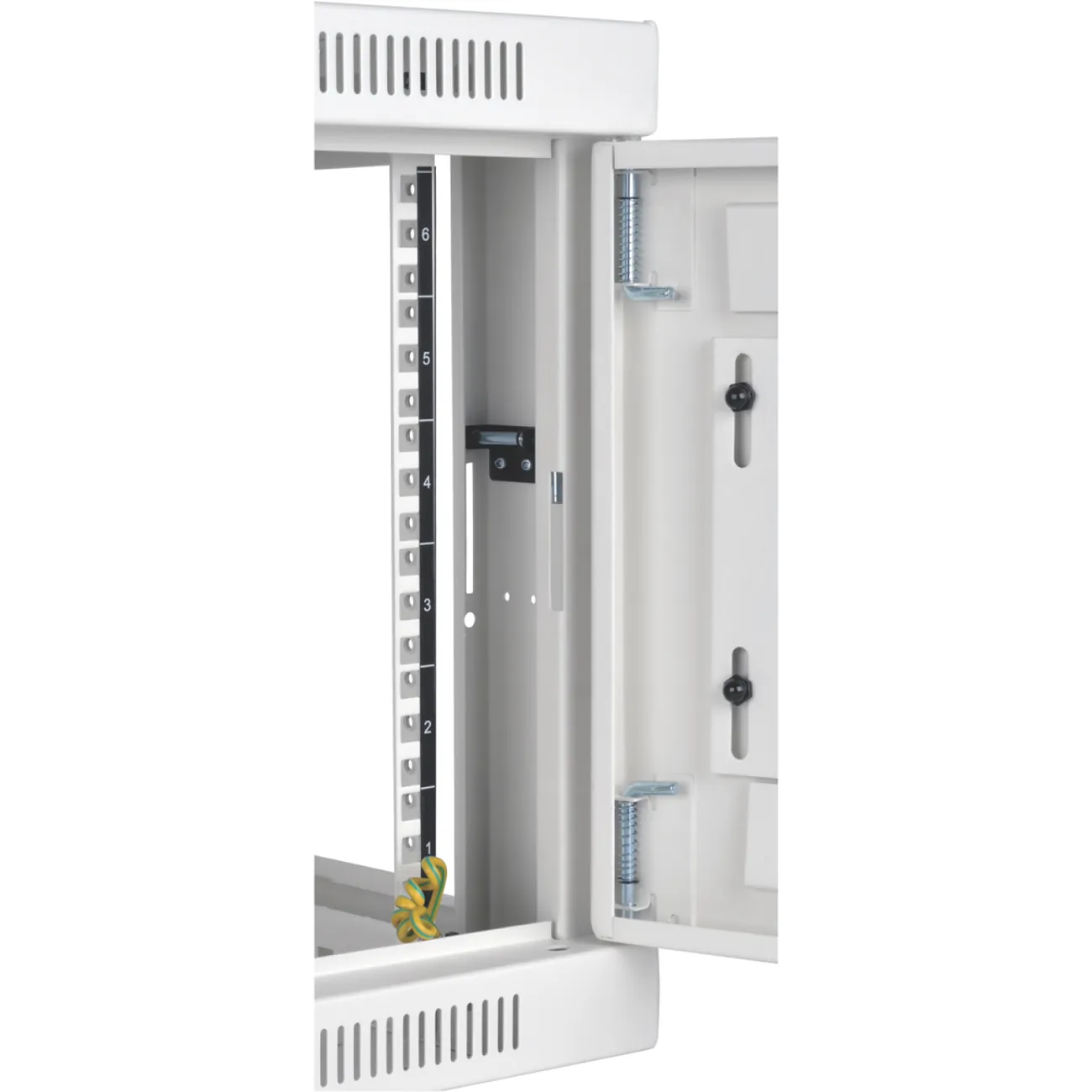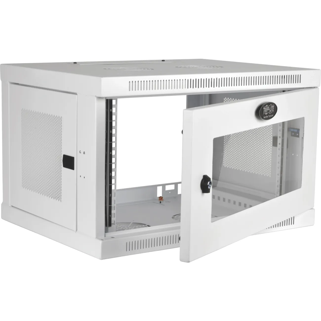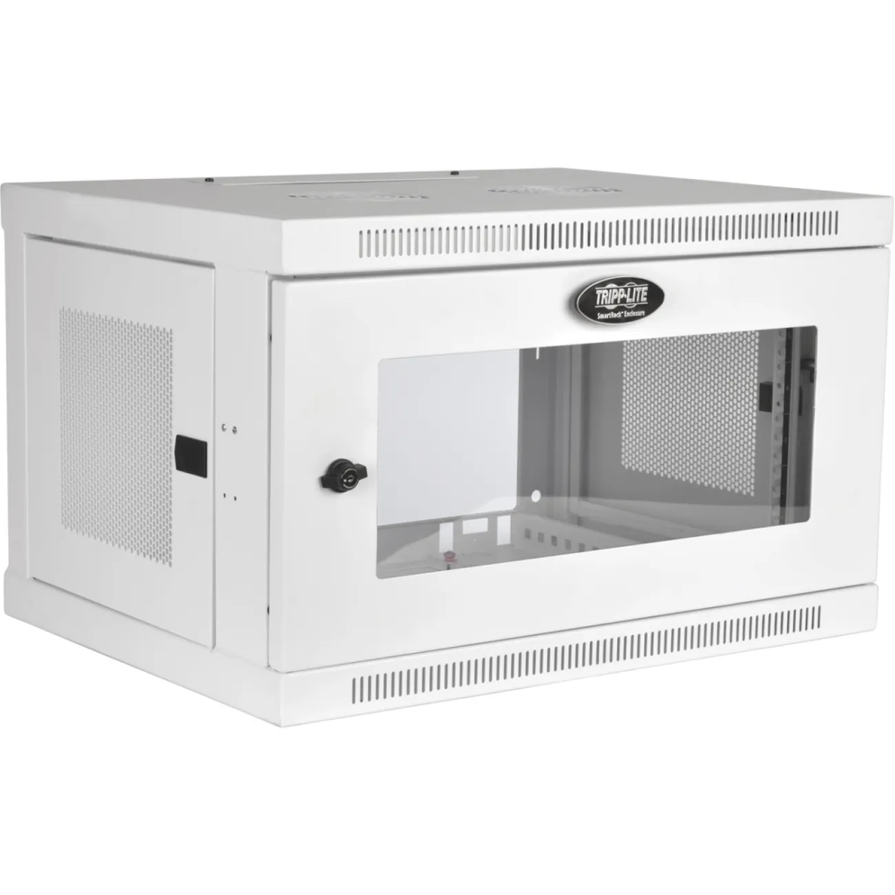 General InformationThe SRW6UWG SmartRack 6U Low-Profile Switch-Depth Wall-Mount Rack Enclosure Cabinet is ideal for storing EIA-standard 19-inch rack equipment in network closets, retail locations, classrooms and other areas with limited floor space where you need equipment to be secure, organized and out of the way. Constructed from heavy-duty steel with a durable white powder-coated finish, the cabinet has a maximum load capacity of 200 pounds.The front door features a shatter-resistant clear acrylic window that lets you monitor equipment readouts without unlocking the enclosure. Not only does the window help prevent equipment tampering and reduce acoustic noise, but it also adds visual flair to your IT installation.To ensure your valuable equipment stays secure, the front door and side panels lock securely to help prevent damage, tampering or theft. The top, bottom and removable side panels are vented, which allows air to flow freely through the cabinet to keep equipment cool. The reversible front door can open left or right by rotating the cabinet 180 before mounting. Convenient top and bottom ports allow easy cable routing through the cabinet.The SRW6UWG comes fully assembled and ready to mount to the wall(or use Tripp Lite's optional SRCASTER caster kit to make it a mobile rolling rack). Square and threaded mounting holes and numbered rack spaces make equipment installation easy. The vertical mounting rails adjust in 7/8-inch increments to accommodate equipment up to 16.5 inches deep, such as network switches and patch panels.Physical CharacteristicsForm Factor: Wall MountableColor: WhiteMaterial: SteelMaterial: Acrylic WindowMaximum Weight Capacity: 200 lbStatic/Stationary Weight Capacity: 200 lbHeight: 14.5"Width: 23.5"Depth: 17.5"Weight (Approximate): 29 lbRack Height: 6URack Width: 19"MiscellaneousPackage Contents: SRW6UWG SmartRack 6U Low-Profile Switch-Depth Wall-Mount Rack Enclosure Cabinet 12 x M6 screws 12 x M6 cage nuts 12 x M6 cup washers 12 x 12-24 screws Removable mounting plate 3 x Mounting plate screws 2 x Keys Owner's manual Assembly Required: NoEnvironmentally Friendly: YesEnvironmental Certification: RoHSWarrantyLimited Warranty: 5 Year