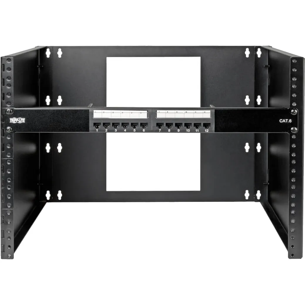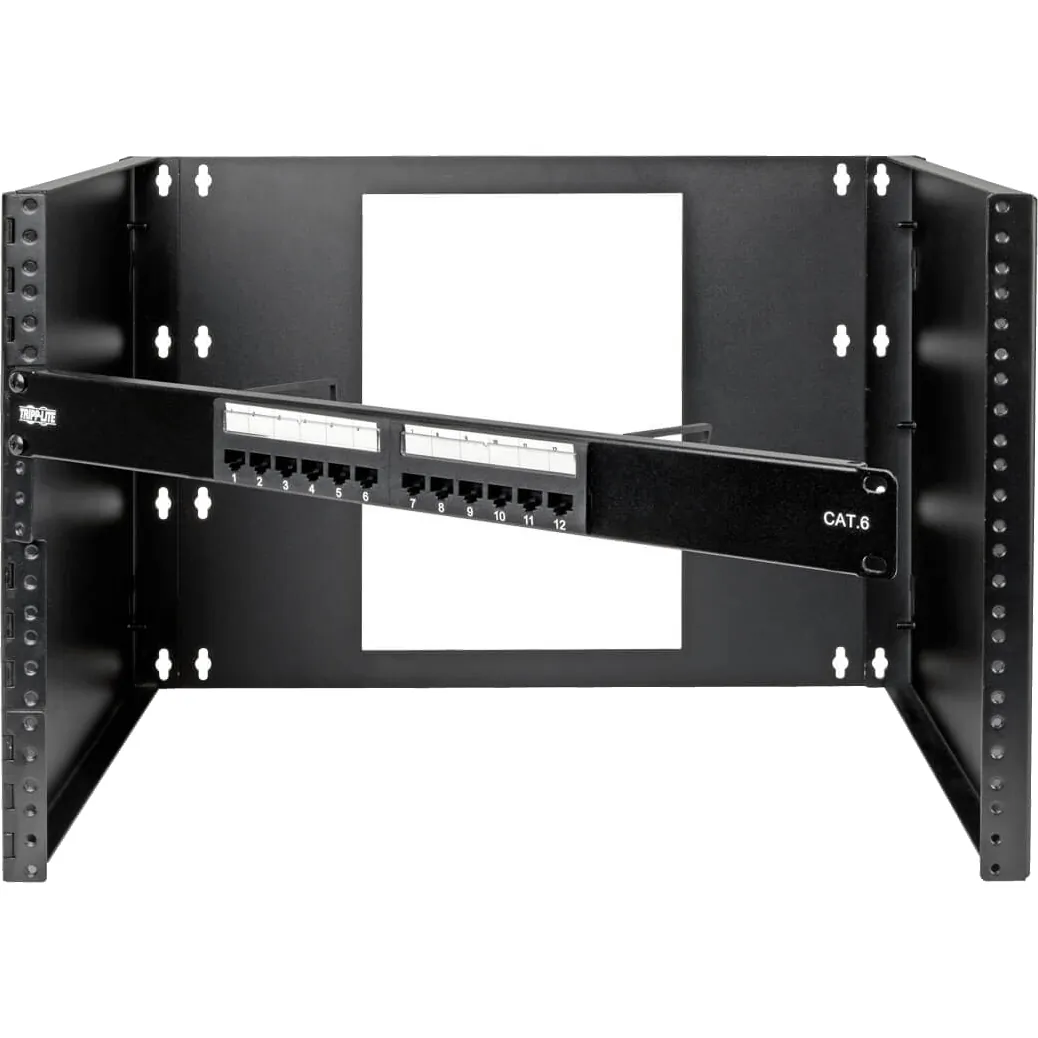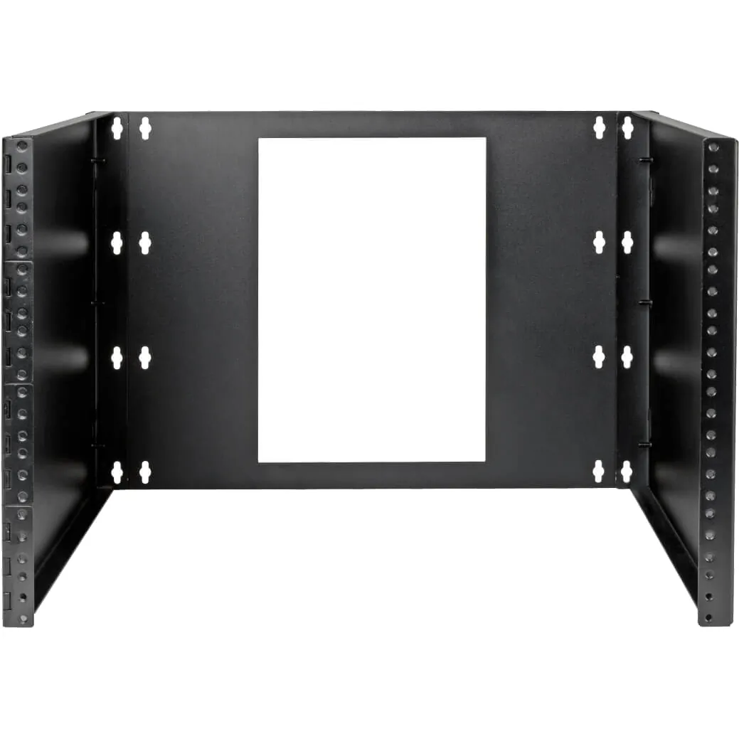 Wall-Mount Bracket Is the Ideal Alternative to a Full-Size Rack Cabinet If you don’t have enough equipment to justify the purchase of a full-size rack or you don’t have enough space for one, this SmartRack® bracket is the ideal alternative for your home office or small business. Made from heavy-duty laser-cut 14-gauge cold-rolled steel with a durable black powder-coated finish, this 8U wall-mount bracket easily attaches to the wall of your back office or closet with the included mounting screws.Hinged Bracket Supports EIA-Standard 19 in. Rack Equipment The SRWO8UBRKT houses 8U of compatible 19-inch rack components, including EIA-compliant switches and patch panels by any manufacturer, up to 14.75 inches deep. The 8U wall-mount bracket is hinged to allow open, unrestricted access to equipment and cabling from either the left or right side. Maximum load capacity is 40 pounds.Rear Cutout Eases Cable Installations The wall-mount bracket features an open cutout in the rear that allows for cable feeds through the wall to streamline installations and reduce cable clutter. The laser-cut metal bracket’s surfaces and edges are smooth to reduce wear on cable jackets and patch panel equipment.Easy Mounting with the Included Hardware Rear keyhole mounting slots are 16 inches apart to align with standard wall-stud placement. Stamped horizontal reinforcement ribs on the back of the bracket provided extra stability. The 8U wall-mount bracket comes with mounting screws for installing the bracket and rack equipment.5-Year Warranty and Environmentally Responsible Design The SRWO8UBRKT comes with a 5-year warranty. It’s manufactured in compliance with strict RoHS specifications, reflecting Tripp Lite’s commitment to environmental responsibility.Product Type Wall MountDevice Supported Network Switch Patch PanelMaximum Load Capacity 40lbColor BlackHeight 35.56cmWidth 50.04cmDepth 38.1cmWeight (Approximate) 4.99kgPackage Contents 8U Wall-Mount Bracket for Small Switches and Patch Panels, Hinged 20 x 12-24 Mounting Screws Assembly Instruction SheetEnvironmentally Friendly YesEnvironmental Certification RoHS