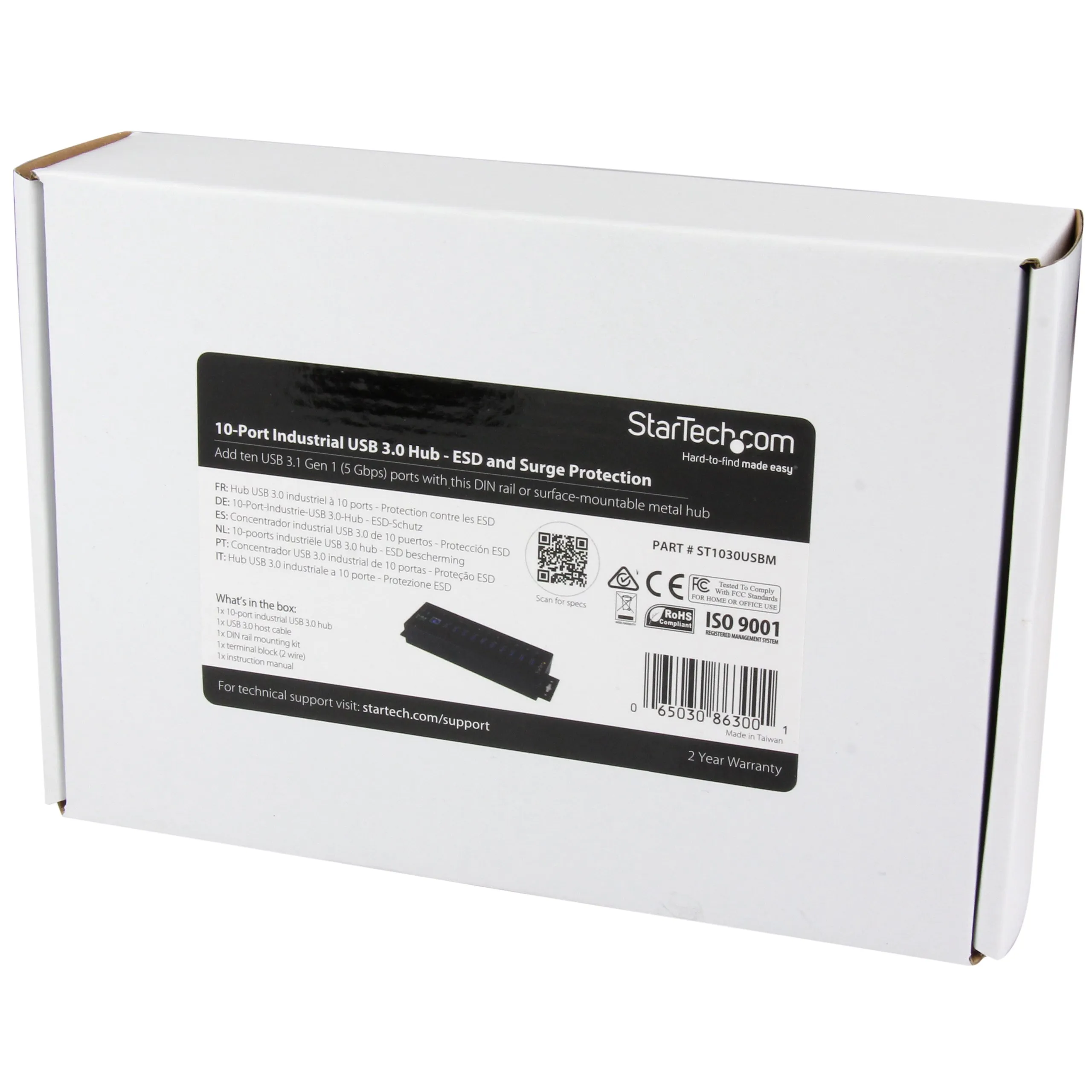 ADD TEN USB 3.0 (5GBPS) PORTS WITH THIS DIN RAIL OR SURFACE-MOUNTABLE METAL HUB