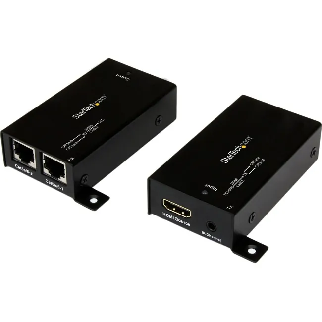 Startech HDMI Over Cat5 / Cat6 Extender with IR - 100 ft (30m) Power Free - Extend HDMI up to 100ft (30m) over Cat5e/6 Cabling with Power over Cable to Receiver - HDMI Over Cat5 - HDMI Cat5 Extender - HDMI Over Cat6 - HDMI Extender Over Cat5 - HDMI Ethernet Extender - HDMI over CAT 5 / CAT 6 Extender - Video Extender - 100ft (30m) Power Free - 1920x1200 - Includes transmitter (local) and receiver (remote) units