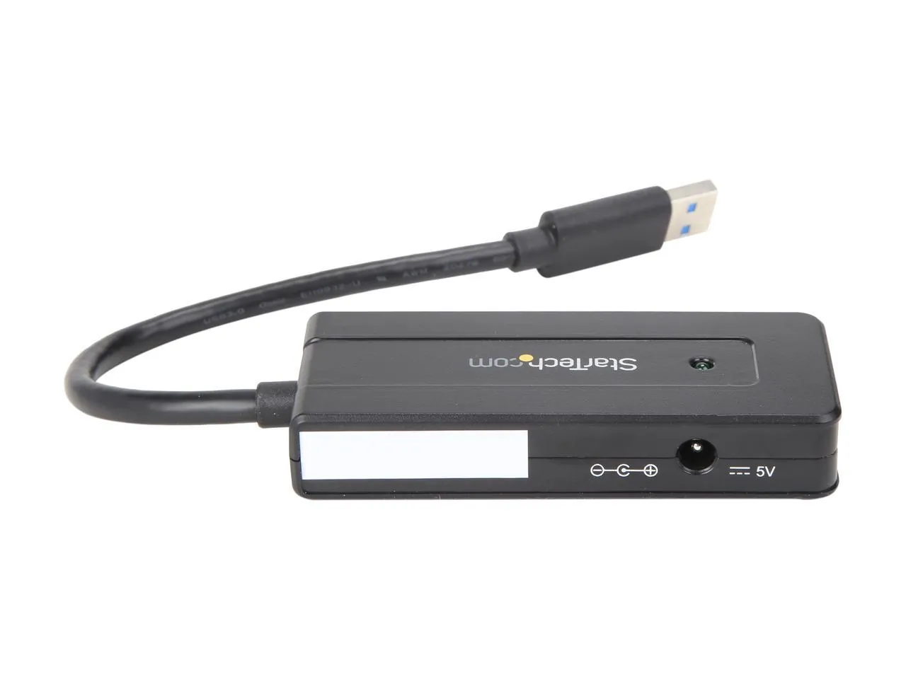 This 4-port USB 3.0 hub turns a single USB port on your laptop into four USB-A ports and features a compact, USB-powered design that makes it perfect for travel. For devices that demand extra power, the hub also comes with an external power adapter.