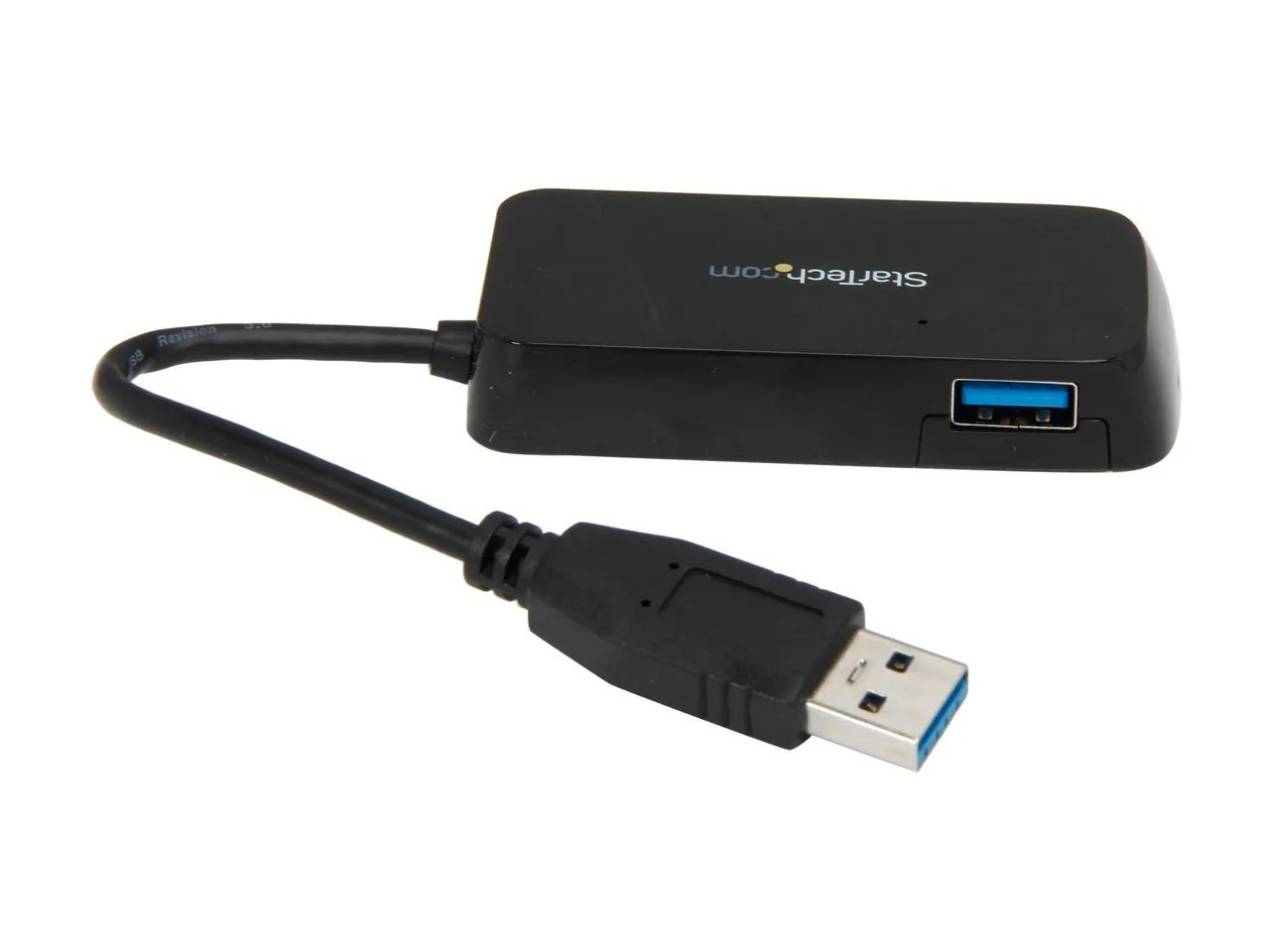 The StarTech 4 Port USB 3.0 Hub is a compact and efficient solution for expanding your USB connectivity. With its built-in cable and SuperSpeed capabilities, this USB splitter allows you to connect multiple devices seamlessly. The sleek black design ensures it fits well in any setup, and it is compatible with virtually all laptops outfitted with USB 3.0 ports.