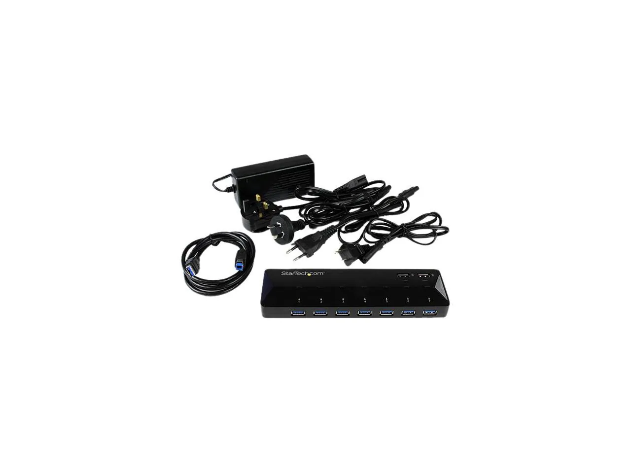 The 7-Port USB 3.0 Hub with Dedicated Charging Ports is designed to expand your PC's capabilities with additional USB ports while providing fast charging capabilities. This hub features 7 USB 3.0 ports for data transfer and 2 dedicated 2.4A charging ports for your devices.