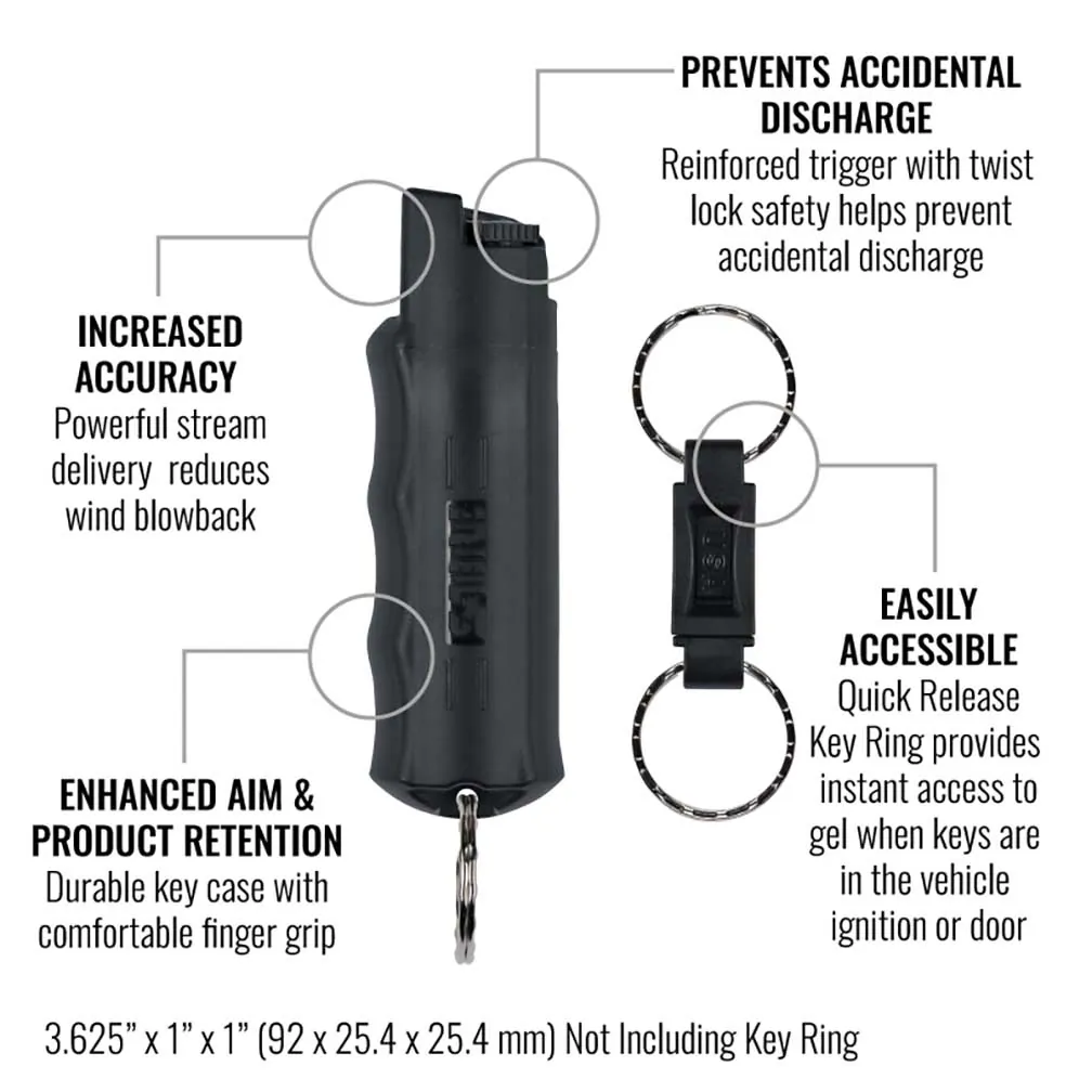 The Sabre Advanced 3-in-1 Pepper Spray combines maximum stopping power with an innovative formula designed for self-defense. This pepper spray includes OC pepper, tear gas, and UV dye to help identify attackers after use. Compact and easy to carry, it provides peace of mind whether you're on a run or simply walking to your car at night.