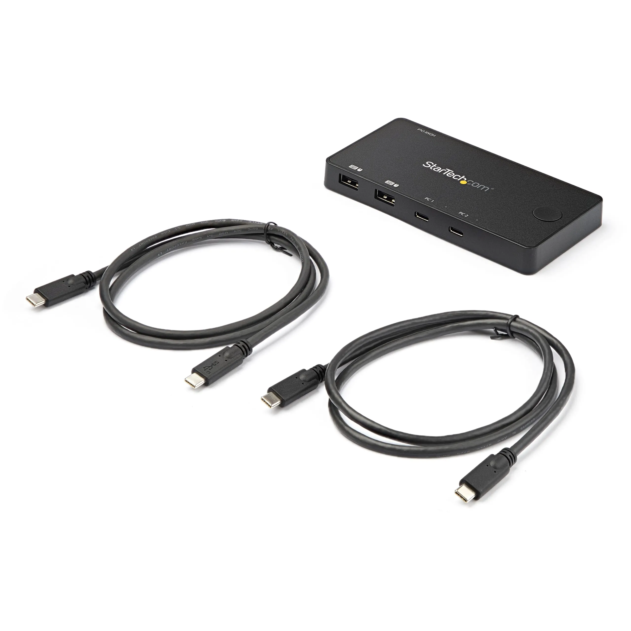 Startech 2 Port USB C KVM Switch - Compact USB C KVM Switch w/single cable connectivity - OS independent/ Works w/Apple iPad Pro MacBook ThinkPad - 2 Port Desktop HD KVM Switch supports 4K 60Hz on one HDMI 2.0 monitor & switching between 2 USB Type C/Thunderbolt 3 laptops (like Dell HP Apple & Lenovo) from 1 console - USB-powered feature eliminates need for a power adapter & lightweight small form factor make this dual port mini KVM Switch portable - Ready to use and USB-C cables for host computers included - 2 Year warranty.