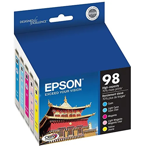 High-capacity ink cartridges contain Claria Hi-Definition Ink for long-lasting photos with unsurpassed richness, depth and clarity. With the ultimate combination of photo quality and longevity, you get better quality than the lab when used in your Epson Artisan 700, 710, 725, 730, 800, 810, 835 and 837. Photos are smudge-resistant, scratch-resistant, water-resistant and fade-resistant. High-capacity ink cartridge is great for high-volume printing. Multi-pack contains individual color ink cartridges of cyan, light cyan, magenta, light magenta and yellow. Each cartridge yields approximately 805 pages.