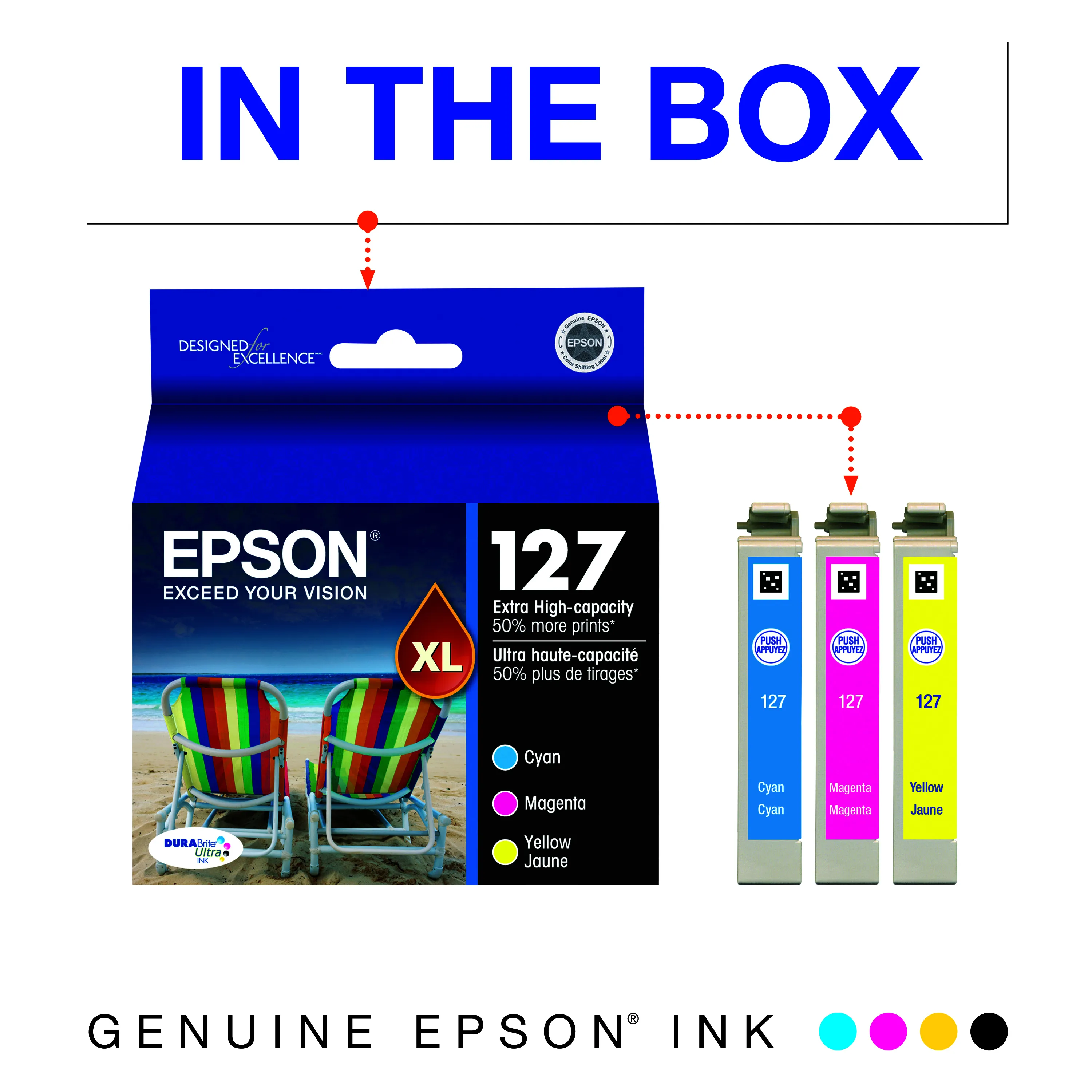 DURABrite Ultra Inks offer superior image quality with smudge-resistance, water-resistance and fade-resistance for durable prints and are ideal for double-sided printing. DURABrite Ultra inks do not bleed through. They are quick-drying for worry-free handling of photos and deliver incredible print quality for everyday text documents on plain paper and photo printing on glossy paper. Extra-high capacity ink cartridges are designed for use with Epson WorkForce 60, 545, 630, 633, 635, 645, 840, 845, WF-3520, WF-3540, WF-7010, WF-7510, WF-7520; NX530 and NX625 printers. Each cartridge yields approximately 765 pages.