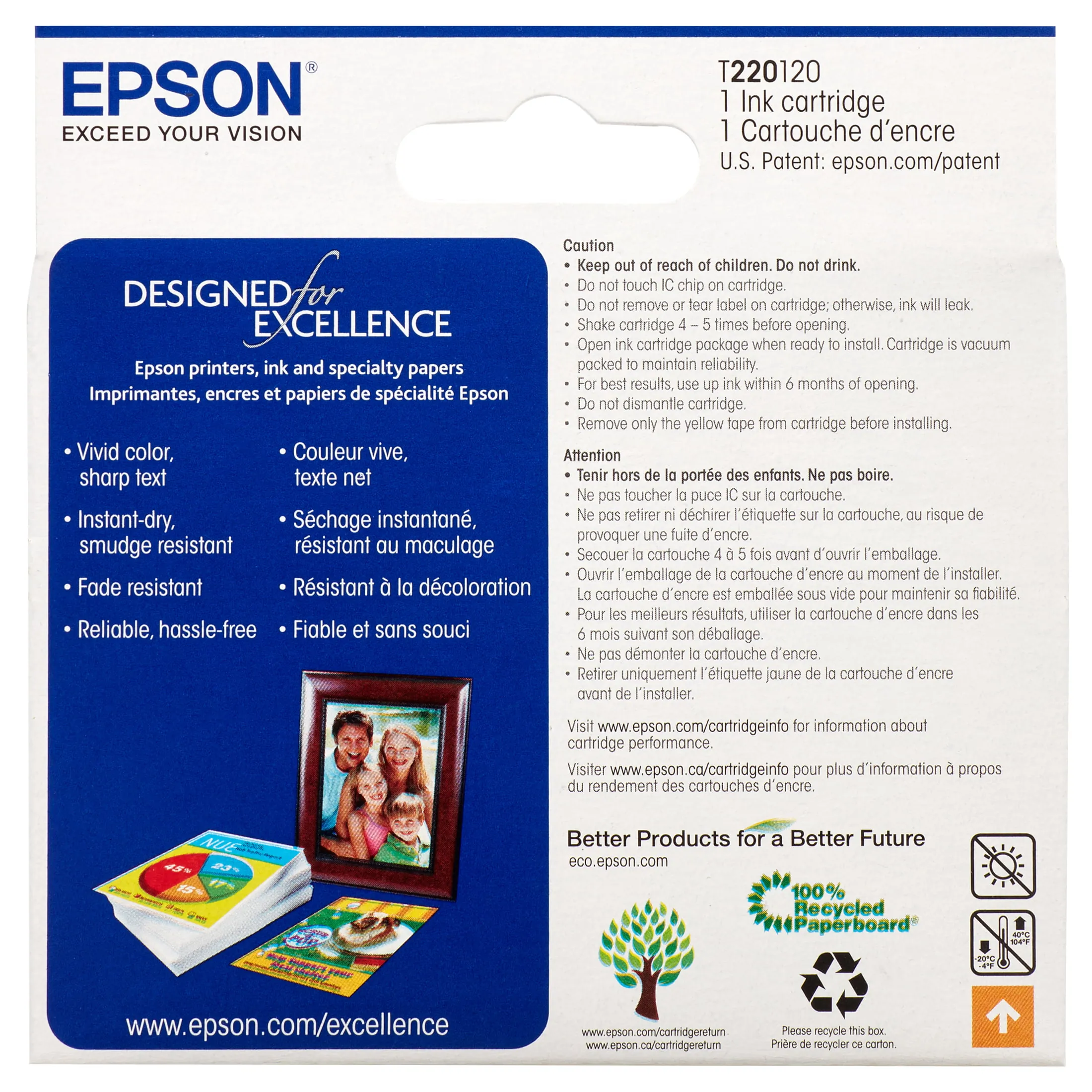 Marketing Information:Ink cartridge generates amazing documents and great photos in your Epson XP-320, XP-420, XP424, WF-2630, WF-2650, WF2660, WF-2750 and WF2760. Replace only the color you need with the individual ink cartridge system. Best of all, only one set of cartridges is needed to print amazing documents and great photos. You won't have to spend additional money on specialized cartridges to print on either plain or photo paper. Epson's revolutionary DURABrite Ultra Ink produces smudge-resistant, fade-resistant and water-resistant prints that look brilliant on both plain and glossy photo paper. Black cartridge yields approximately 175 pages.