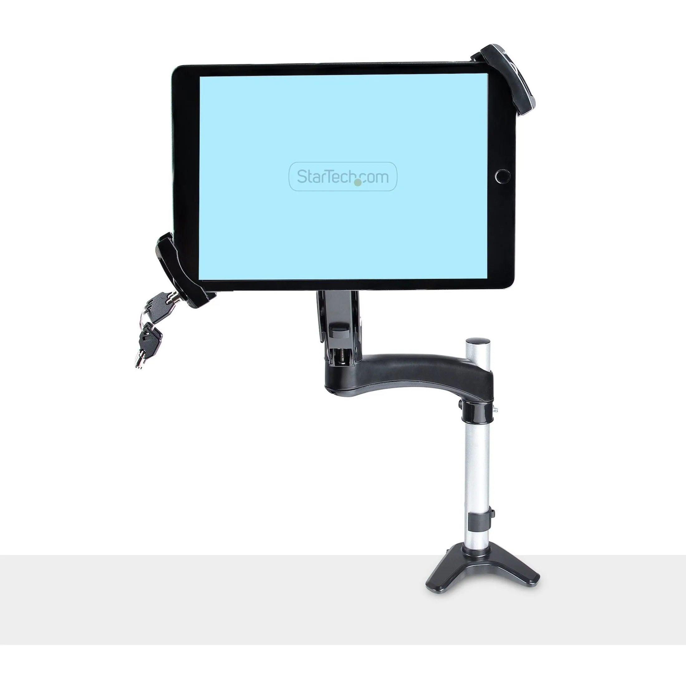 Attach a tablet to a monitor mount with the VESA mount adapter for tablets. Compatible with iPad Pro 11 in and other tablets w/ display size 7.9-12.5in/Up to 4.4lb/VESA 75x75-100x100/Office-Retail - The VESA mount adapter features a 0.7 lb plate to accommodate the minimum weight for operation of gas/spring-assisted mounts - The secure tablet holder grips the tablet corners to avoid blocking buttons/ports/front-facing camera. Anti-theft features include tamper-resistant screws and locking clamp.