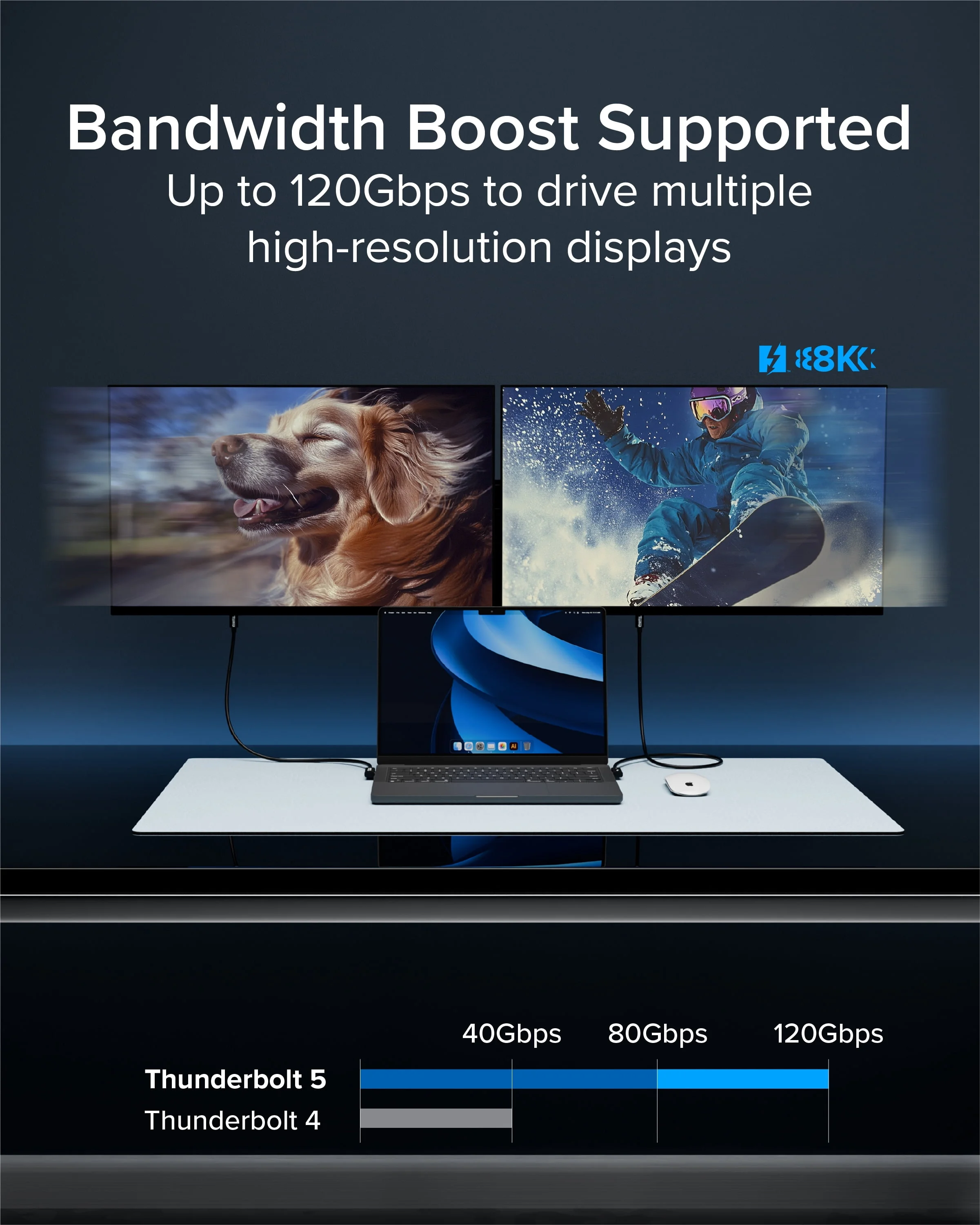 FIED UP TO 120GBPS BANDWIDTH BOOST FOR LAPTOPS & DOCKS WORKS WITH THUNDERBOLT 4