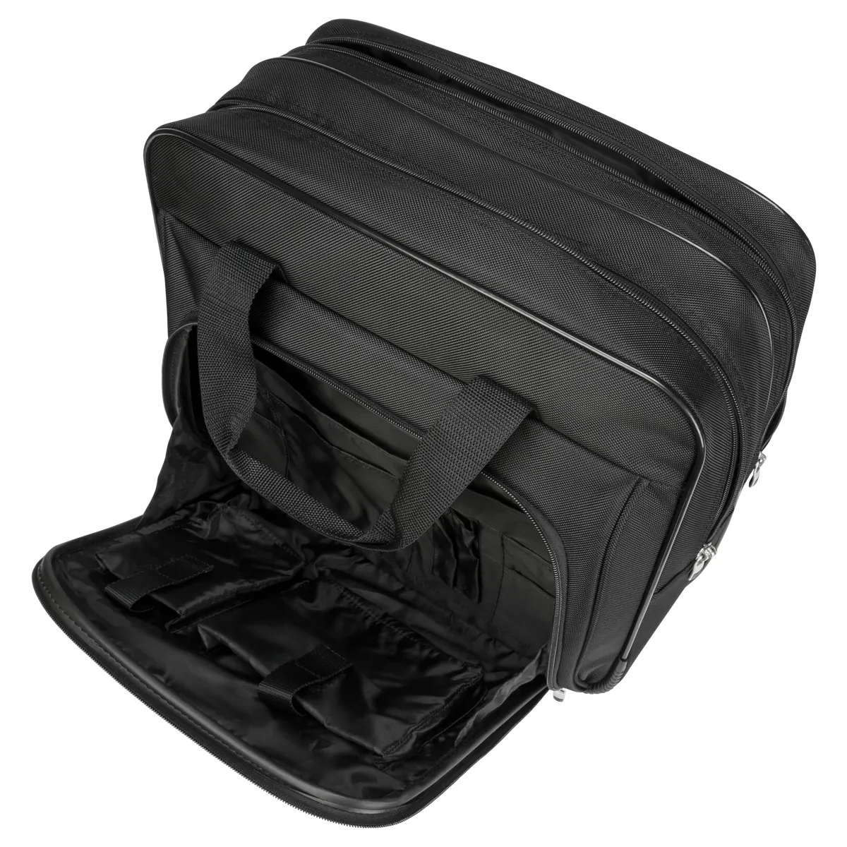 Extended compartment space for those who pack expecting the unexpected; On the road and on the go, rolling cases provide comfort those who need to keep everything at arms length. Combine with one of our trolley-strap equipped bags for the ultimate in versatility; Zipdown workstation includes pen loops, business card holder, zippered pocket, cell phone pocket and large pouch to store additional accessories; large storage space for other office essentials or clothing for an overnight stay.