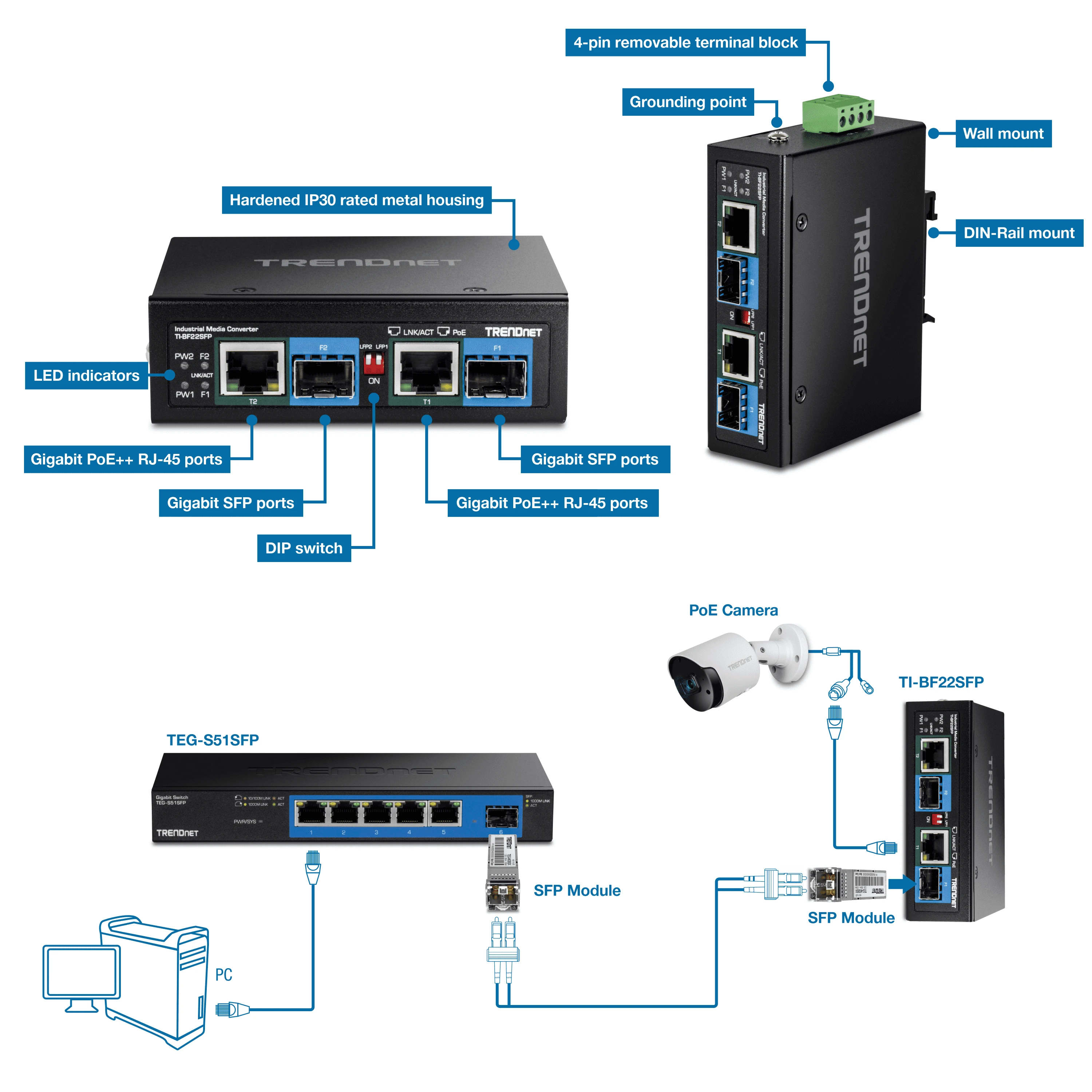 2-PORT INDUSTRIAL SFP TO GIGABIT POE++ MEDIA CONVERTER