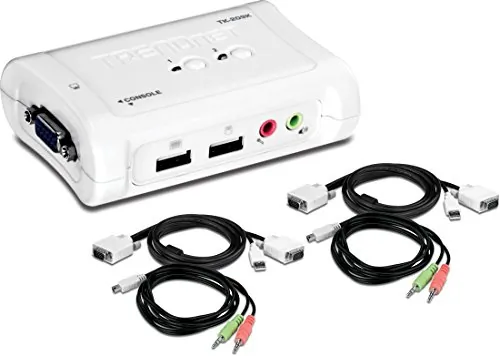 The 2-Port USB Audio KVM Switch lets you control multimedia PCs with just one keyboard, monitor, mouse, microphone, and a set of speakers. The KVM switch not only allows you to share your monitor, keyboard and mouse but you can also share microphone and speakers. With just a simple press of a button, this KVM switch eliminates the hassle of cable swapping and switching between 2 PCs. With it's Hot-Plug, Auto-Scan and Hot-Key operating features, the TK-209K is the perfect choice for managing 2 PCs. Separate KVM cables are included. RoHS compliant