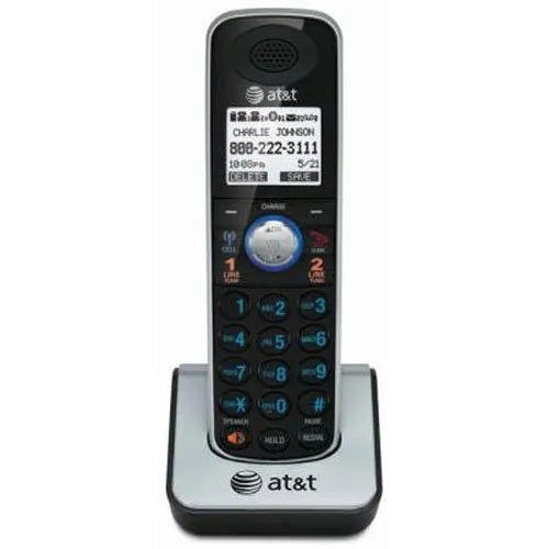 Accessory handset is designed for use with AT&T Dect 6.0 TL86109 Telephone System with Bluetooth capability. Dect 6.0 technology delivers up to 45 percent more range over 2.4 GHz and 5.8 GHz phone systems without needing a boost in power. Handset speakerphone leaves your hands free to do other things and lets more people in on the conversation. Intercom between handsets. Conference between an outside line and up to four cordless handsets. Two-line handset also offers high-contrast backlit LCD and lighted keypad, Caller ID/Call Waiting with a 200-name/number history, any key answer, volume control, last 20-number redial, and ringer volume control. Handset is headset compatible with its 2.5mm jack. Setup menu is in English, Spanish and French. Energy Star qualified.AT&T TL86009 DECT 6.0 Accessory Handset for AT&T TL86109, Black, Silver