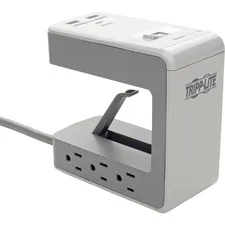 Six-outlet surge protector features a spring-loaded clamp that attaches to any flat, smooth surface up to 2-1/2" thick to take it with you anywhere you need to plug in your electronic devices. Its surge protection rating of 1080 joules defends your sensitive electronic components against even the strongest power surges and spikes. 8' power cord with a NEMA 5-15P plug pivots 90 degrees to accommodate installation to a horizontal or vertical surface. Two USB-A ports share 2.4 amps to charge your smartphone, tablet and other USB mobile devices. In addition to the dual USB-A ports, a 3-amp USB-C port charges devices quickly and safely. Surge protector filters out disruptive line noise that can disturb your electronics and inflict hardware damage or data loss. This EMI/RFI filtering also helps your connected components perform better and last longer. The on/off switch provides one-touch control over your connected equipment.