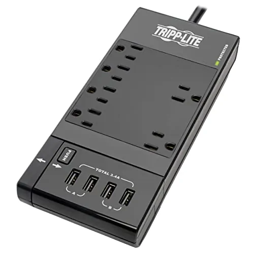 Tripp Lite Safe-IT 6-Outlet Surge Protector, Retractable USB Charger, 5-15R Outlets, 4 USB Charging Ports, 8 ft. (2.4 m) Cord, Antimicrobial Protection