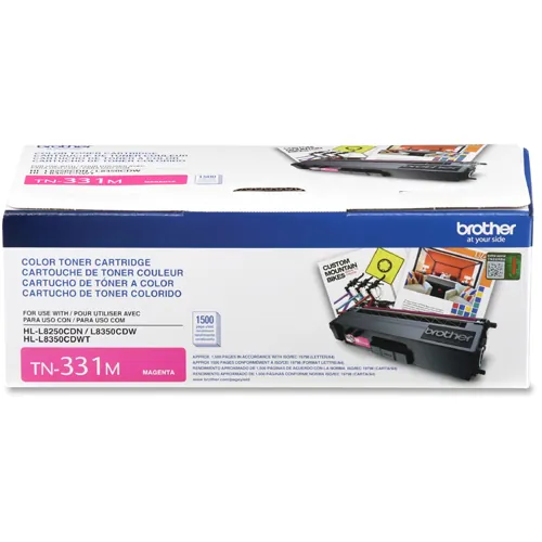 Toner cartridge delivers high-impact color business printing in Brother HL-8350 Series Color Laser Printers. All genuine Brother printer supplies are designed as part of an entire printing system to provide a superior degree of quality. Genuine Brother toner is delicately balanced to provide even flow and toner distribution. Cartridge is easy to install and delivers professional results. Cartridge yields 1,500 approximately pages.Brother Genuine TN331M Magenta Toner Cartridge, 1 Each (Quantity)