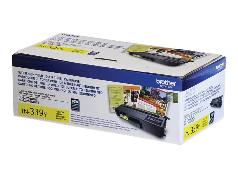 Xh yellow toner cartridge for use with brother hl-l9200cdw, hl-l9200cdwt, mfc-l9550cdw. This is a OEM COLOR TONER BROTHER brand Toner Cartridge (XH YELLOW TONER) that works with the following printers / machines (HL-L9200CDW, HL-L9200CDWT, MFC-L9550CDW). Product Features: Cartridge Yield: Super High Yield Compatible with: Brother HL-L9200CDW, HL-L9200CDWT, HL-L9300CDWT, MFC-L9550CDW, MFC-L9550CDWT Duty Cycle: Up to 6000 pages ISO/IEC 19798 Printing Color: Yellow Printing Technology: Laser Product Description: Brother TN339Y - Super High Yield - yellow - original - toner cartridge Product Type: Toner cartridge Key Selling Points:, Brother Genuine TN339Y Super High Yield Yellow Toner Cartridge., Professional color laser print quality you can consistently rely on for 6,000 pages*. (*Approx. toner cartridge yields in accordance with ISO/IEC 19798 (letter/A4))., Intelligently engineered to work in seamless unison with your Brother printer., Brother Genuine toner produces rich, vibrant prints that withstand the test of time., Brother offers an environmentally responsible way for customers to dispose of Brother Genuine cartridges. Visit www.brother-usa.com/Environment to learn more., For full product specifications see www.brother-usa.com Benefits of this product: Brother Genuine TN339Y Super High Yield Yellow Toner cartridge delivers crisp, professional color laser output. XH YELLOW TONER. HL-L9200CDW, HL-L9200CDWT, MFC-L9550CDW. OEM BROTHER Brand.