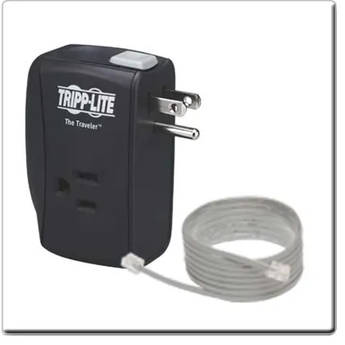 The Tripp Lite Surge Protector provides reliable and efficient protection for your devices. This compact unit features two outlets and connects directly to the wall socket, ensuring you save valuable space. With a surge protection rating of 1050 joules, it safeguards your equipment from power spikes, making it an ideal choice for modems, fax machines, and other essential electronics.