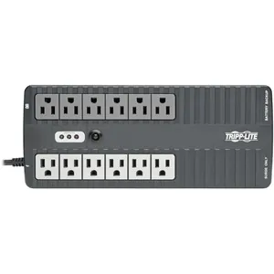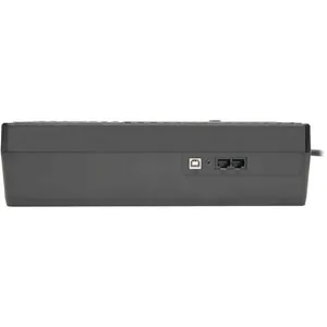 UPS offers standby protection for PCs and peripherals to prevent data loss and system downtime by providing battery-supported AC output during brownouts and blackouts. Ultra-compact, wall-mountable UPS includes 12 widely spaced, output receptacles to accommodate large transformer plugs. 6 outlets provide full battery support and surge suppression for computers, monitors and other vital system components. 6 additional, surge suppression-only outlets are ideal for printers and other accessories not requiring battery support. Single-line, telephone suppression jacks protect modem or other peripherals with a standard dialup or DSL phone line connection. HID-compliant USB interface enables integration with built-in power management and auto-shutdown features of Windows and Mac OS X. Audible alarm and front panel LEDs offer status information regarding line and battery power operation. 750VA/450 watt power handling ability supports entry-level PCs for up to 45 minutes during power failures.
