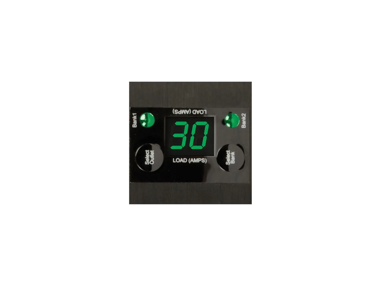 Front Panel LCD Display: Digital display reports load level in amps for LOAD BANK 1 (Outlets 1-12), LOAD BANK 2 (Outlets 13-24), LOAD BANKS 12 COMBINED (Outlets 1-24) and each individual output receptacle Digital display can also be used to scroll the configured IP address