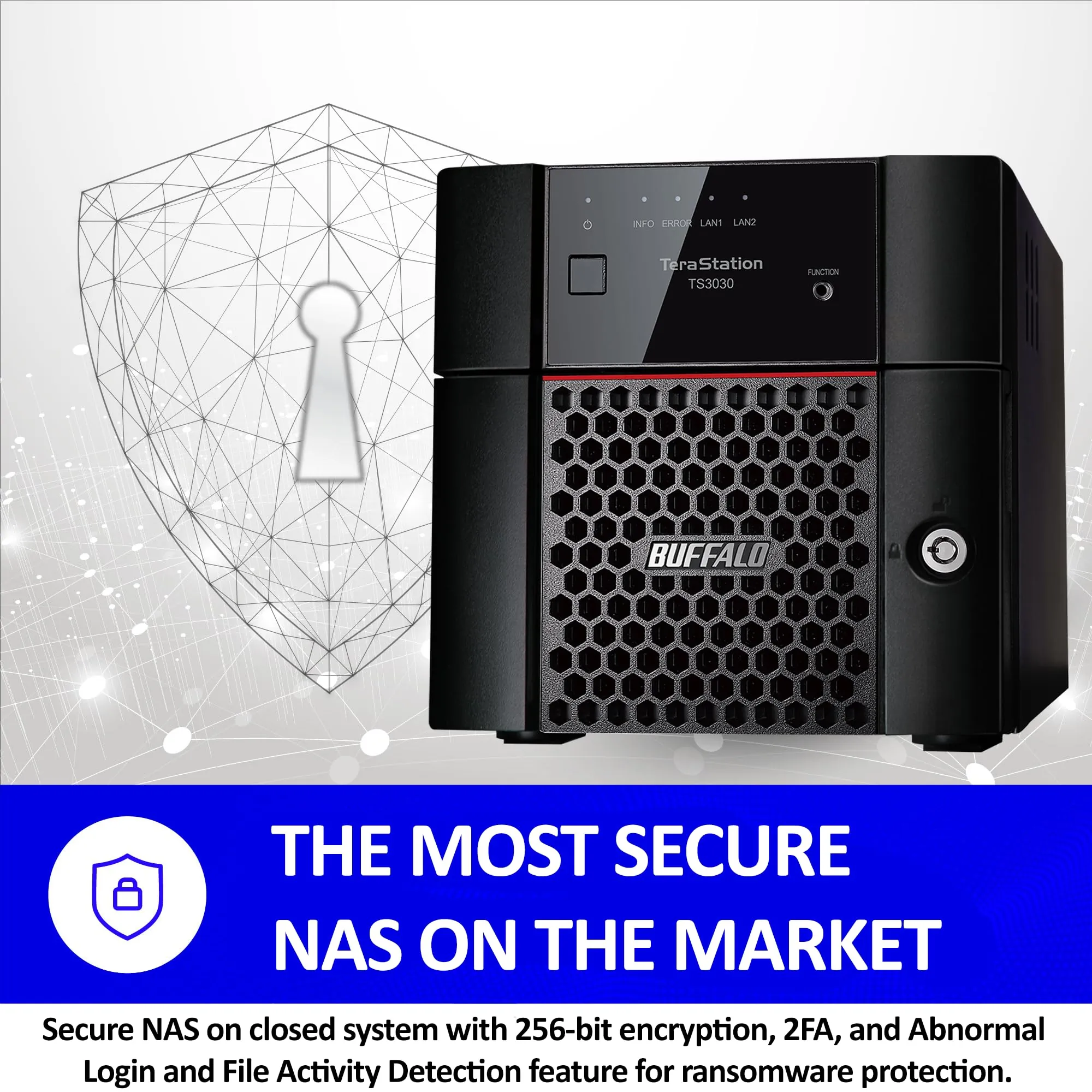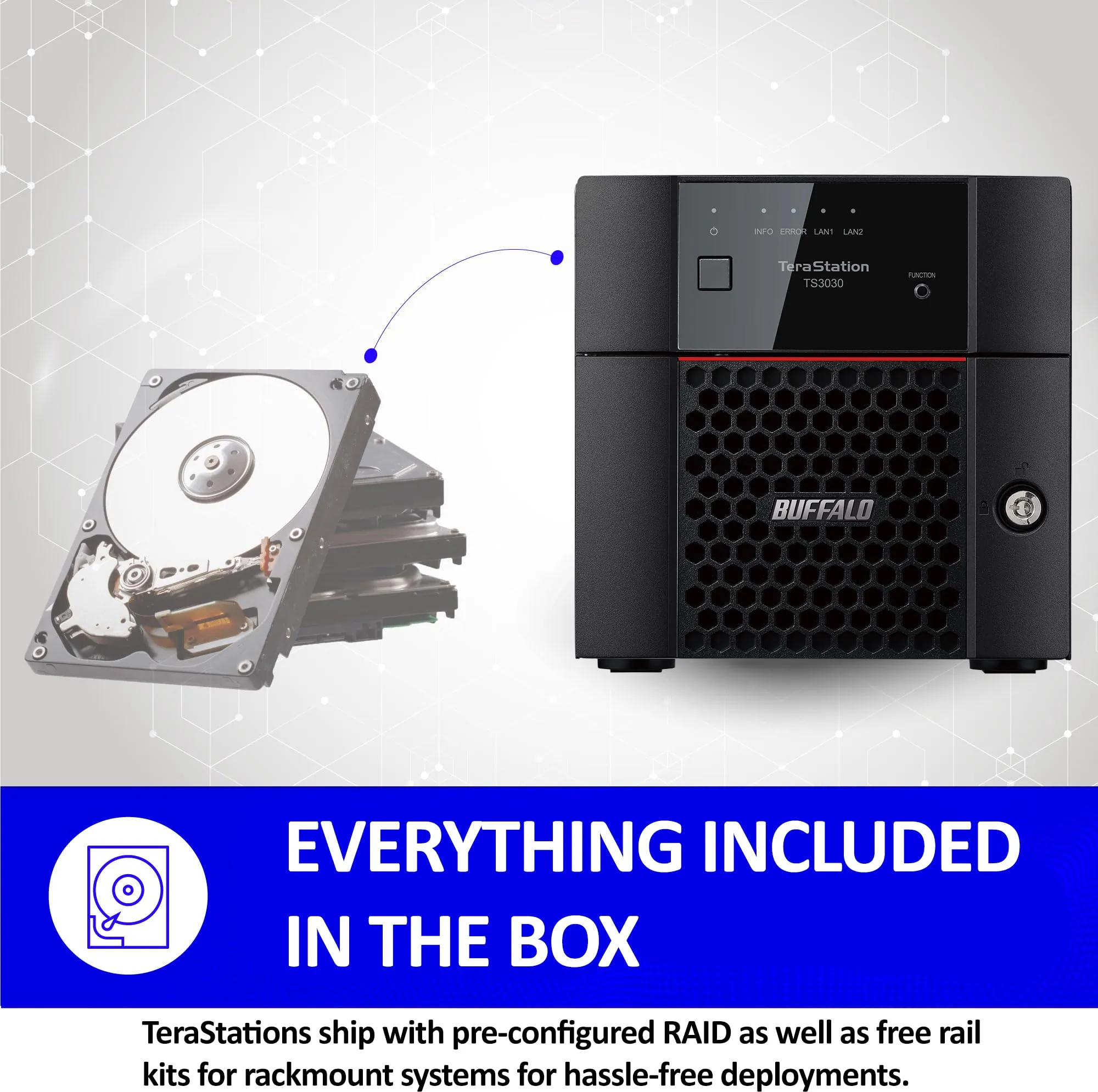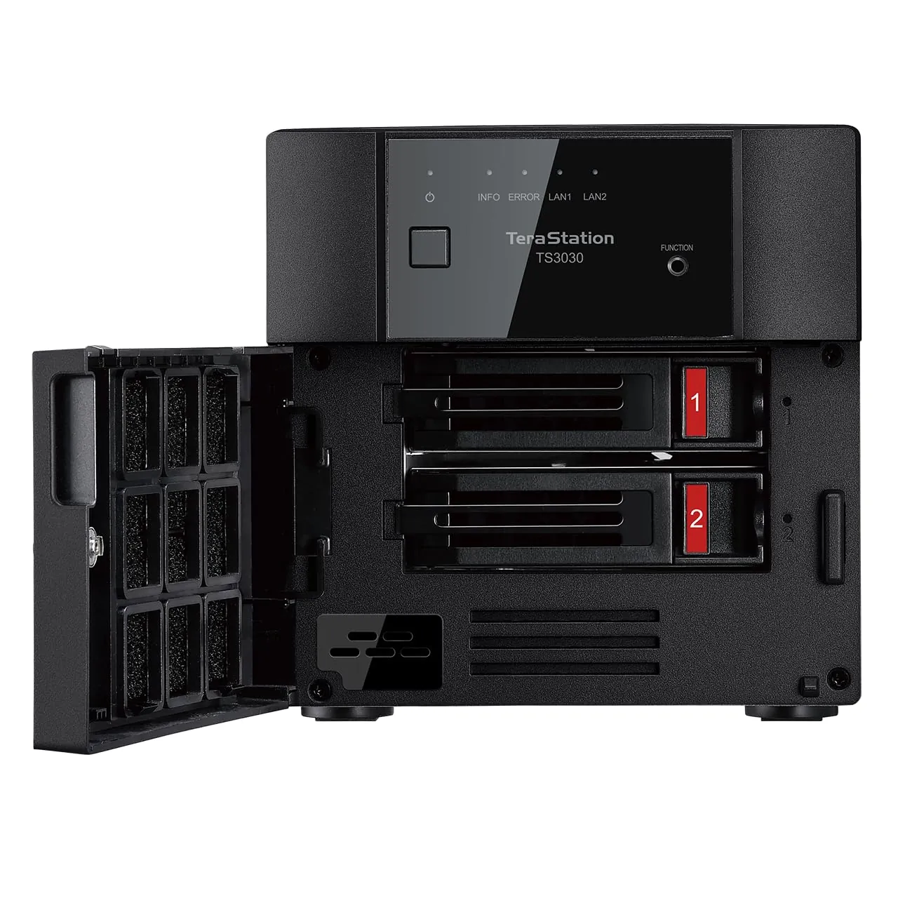 The Buffalo TeraStation 3230DN is a powerful 16TB NAS solution designed for home and small office environments. With a robust 2-bay design, it comes equipped with dual 8TB hard drives configured for RAID, ensuring data redundancy and reliability. The NAS supports 2.5GbE networking, which allows for faster data transfers and improved performance.
