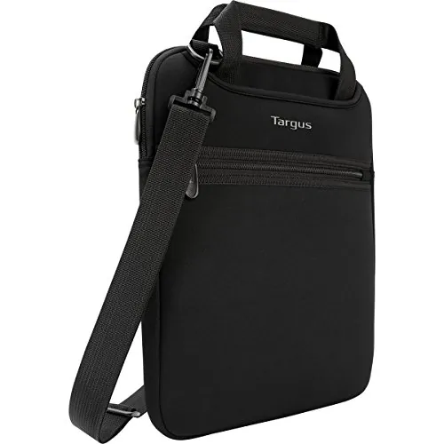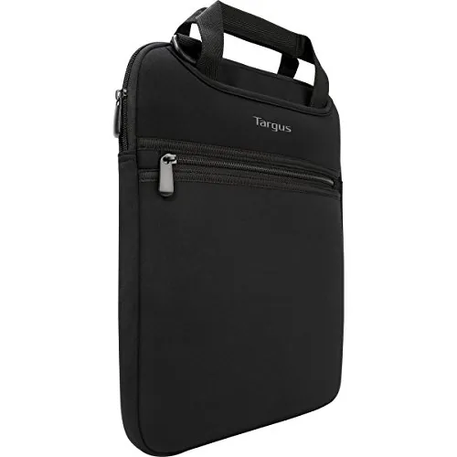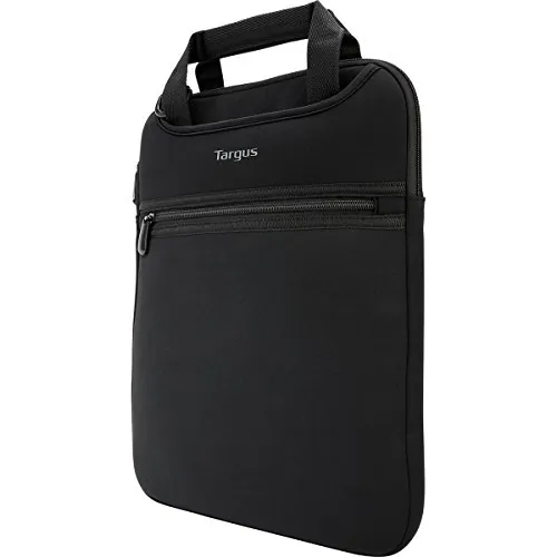This 12-inch Vertical Slipcase is designed for your notebook or Chromebook. With its sleek black exterior and hideaway handles, it offers both style and functionality. The durable material ensures long-lasting protection for your device, while the space-efficient design allows for easy storage and transport.
