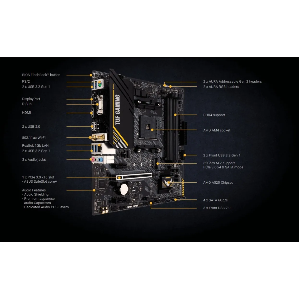 ASUS TUF GAMING A520M-PLUS WIFI AM4 AMD A520 SATA 6Gb/s Micro ATX AMD Motherboard