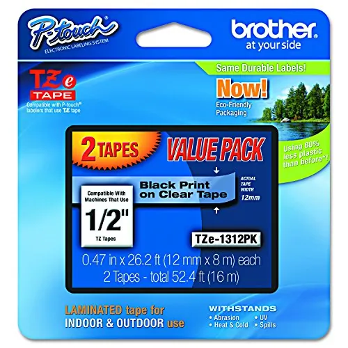 Brother 1/2 Black/Clear Laminated TZe Tape Value Pack - 1/2 - Black, Clear - 2 / Pack