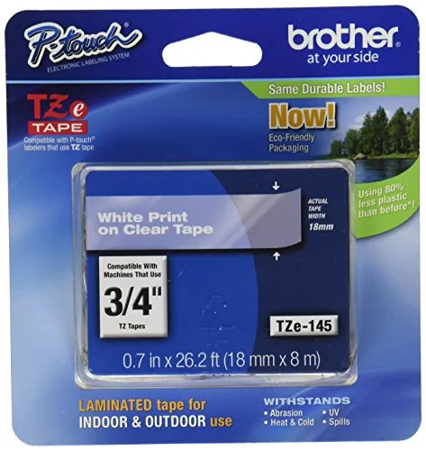 Brother 18mm (0.7) White on Clear tape for P-Touch 8m (26.2 ft) - 3/4 - White - 1 Each