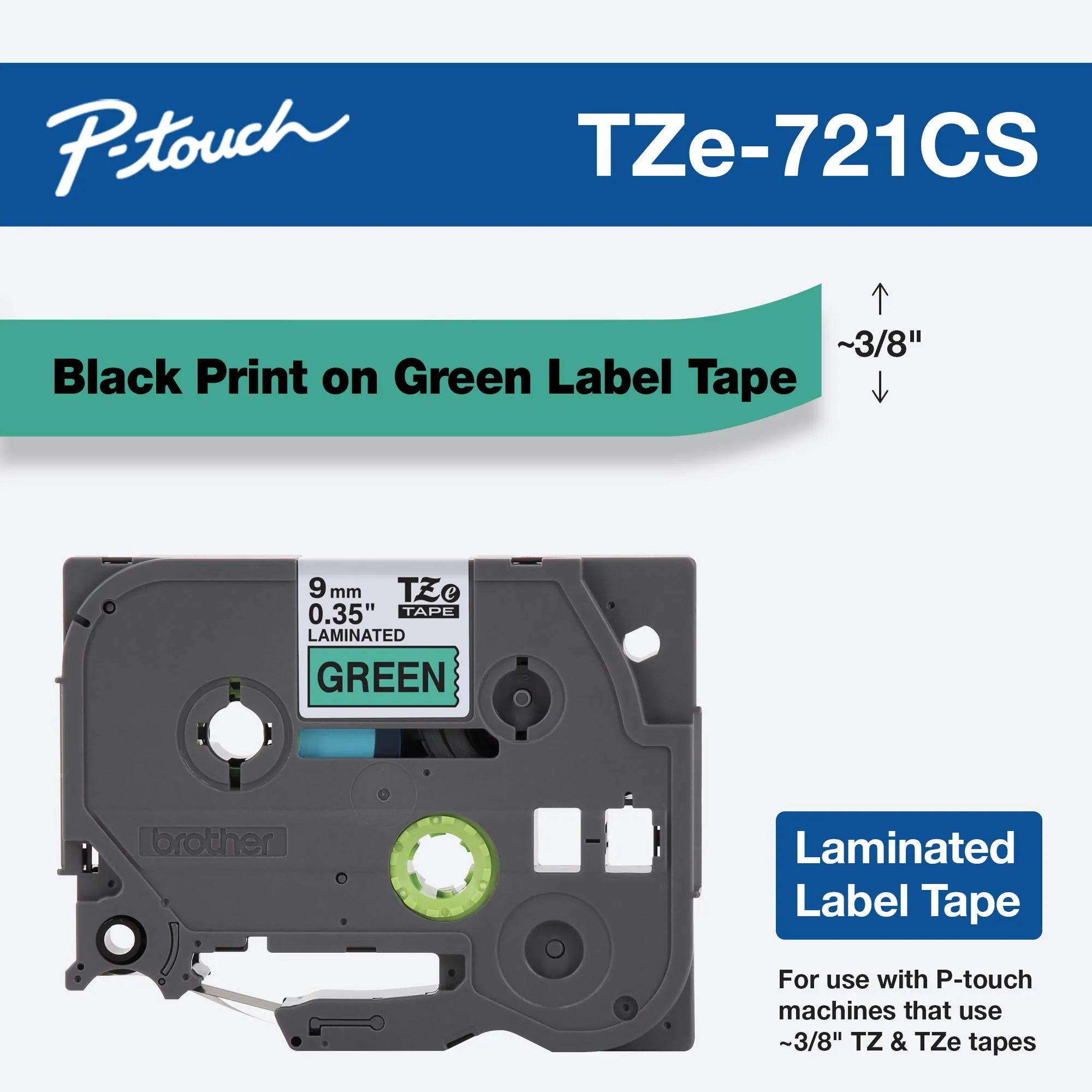 The Brother TZE-721 Tape Cassette features a vibrant black text on a green background, perfect for creating eye-catching labels. Its durable design ensures that your labels can withstand various environmental conditions, making it ideal for both indoor and outdoor use.