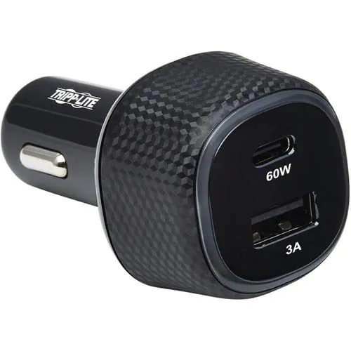 Tripp Lite Dual-Port USB Car Charger, 63W Max - USB-C PD 3.0 Up to 60W, USB-A QC 3.0 Up to 18W