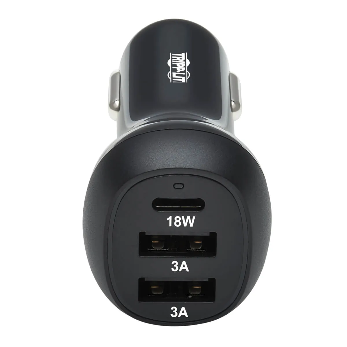 USB CAR CHARGER 3-PORT 36W MAX CHARGING USB C, 2 USB-A BLACK