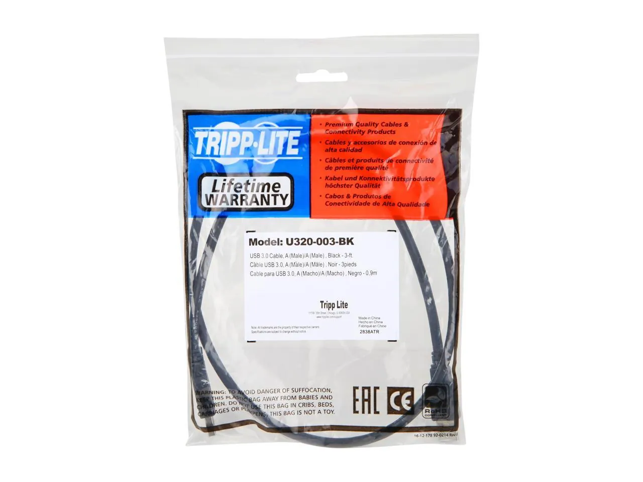 Tripp Lite 3ft USB 3.0 SuperSpeed A/A Cable M/M 28/24 AWG 5 Gbps Black 3' - USB cable - USB Type A (M) to USB Type A (M) - USB 3.0 - 3 ft - black