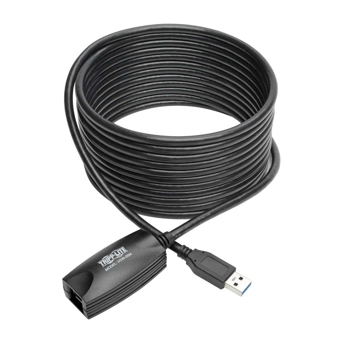 Attach various devices to your computer with the Tripp Lite USB 3.0 SuperSpeed A/A Active USB 3.0 Extension Cable. It's compatible with printers, game controllers, keyboards and more. This 16' USB cable lets you go far beyond the original 5' limit of most cables. It delivers a top speed of 5Gbps for fast file transfer or to ensure that there's no lag while you play games that require fast response times. You can also use it with older USB 2.0 devices to help provide you with added value. As a USB cable, it also carries power, so you can use it to charge your portable devices for later use. It's quick to install, and you can set it up and start using your various devices immediately.