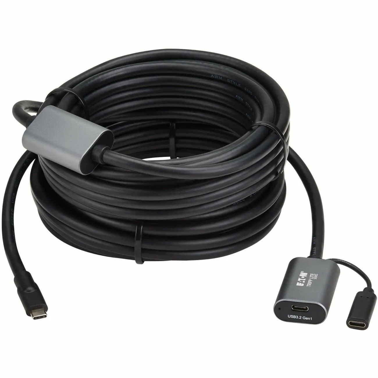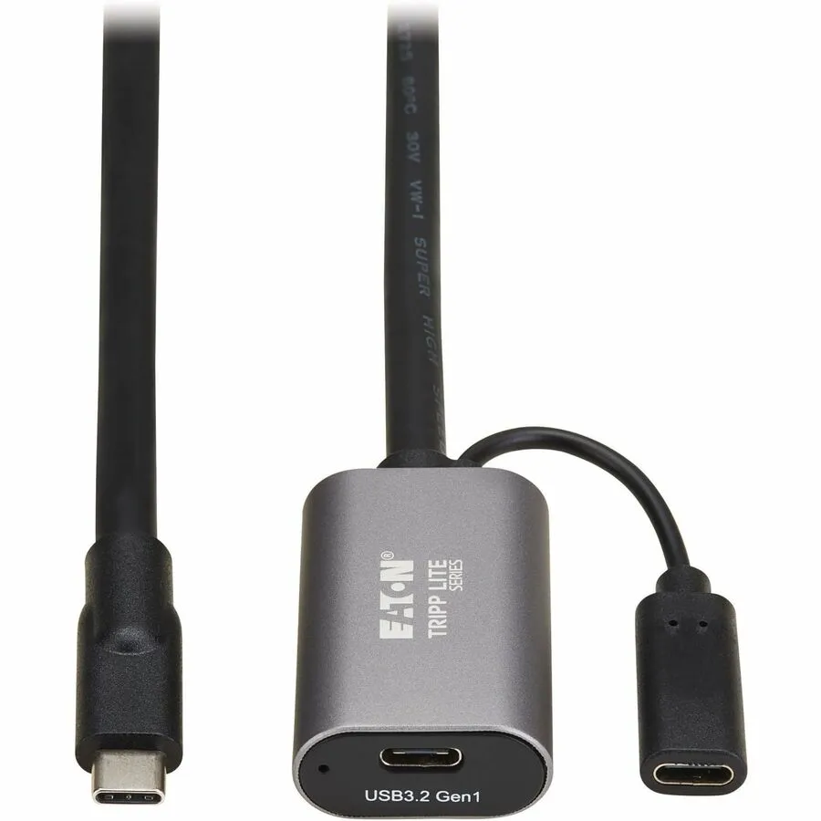 USB-C Extension Cable Connects Computers, Printers, Modems and Other USB-C Equipment. This USB-C to USB-C Active Extension Cable (M/F) attaches to your current USB 3.2 Gen 1 cable to extend it by 10 meters (32.8 feet). It connects your computer, tablet, notebook, MacBook Pro, Chromebook, smartphone or other compatible USB-C device to a USB-C keyboard, portable hard drive, webcam or microphone/headset. The 10-meter length allows you great flexibility in placing equipment. The U330-10M-C2C-C is recommended for classrooms, conference rooms and other areas where USB-C devices may be placed apart from each other. Built-In Signal Booster for Peak Performance. Just connect the active cable’s male USB-C plug to your laptop or notebook computer and the female USB-C connector to a USB device cable to extend your total connection beyond USB’s natural five-meter limit. The bus-powered signal booster ensures USB 3.2 Gen 1 data transfer speeds up to 5 Gbps with no signal loss. The USB-C active extension cable is backward compatible with previous USB generations, so you can use it with legacy equipment. 5V USB-C PD Charging Port Keeps Devices Functioning. The U330-10M-C2C-C works with a standard USB-C charging cable and a compatible Power Delivery (PD) charger to provide 5V to a connected device to ensure a stable connection from the host to the device.Note:nbsp;The USB-C 5V charging port is not required for all applications. In the event that external power is required, the following USB power adapter models can be purchased separately: U280-002-W12, U280-W02-A1C1.