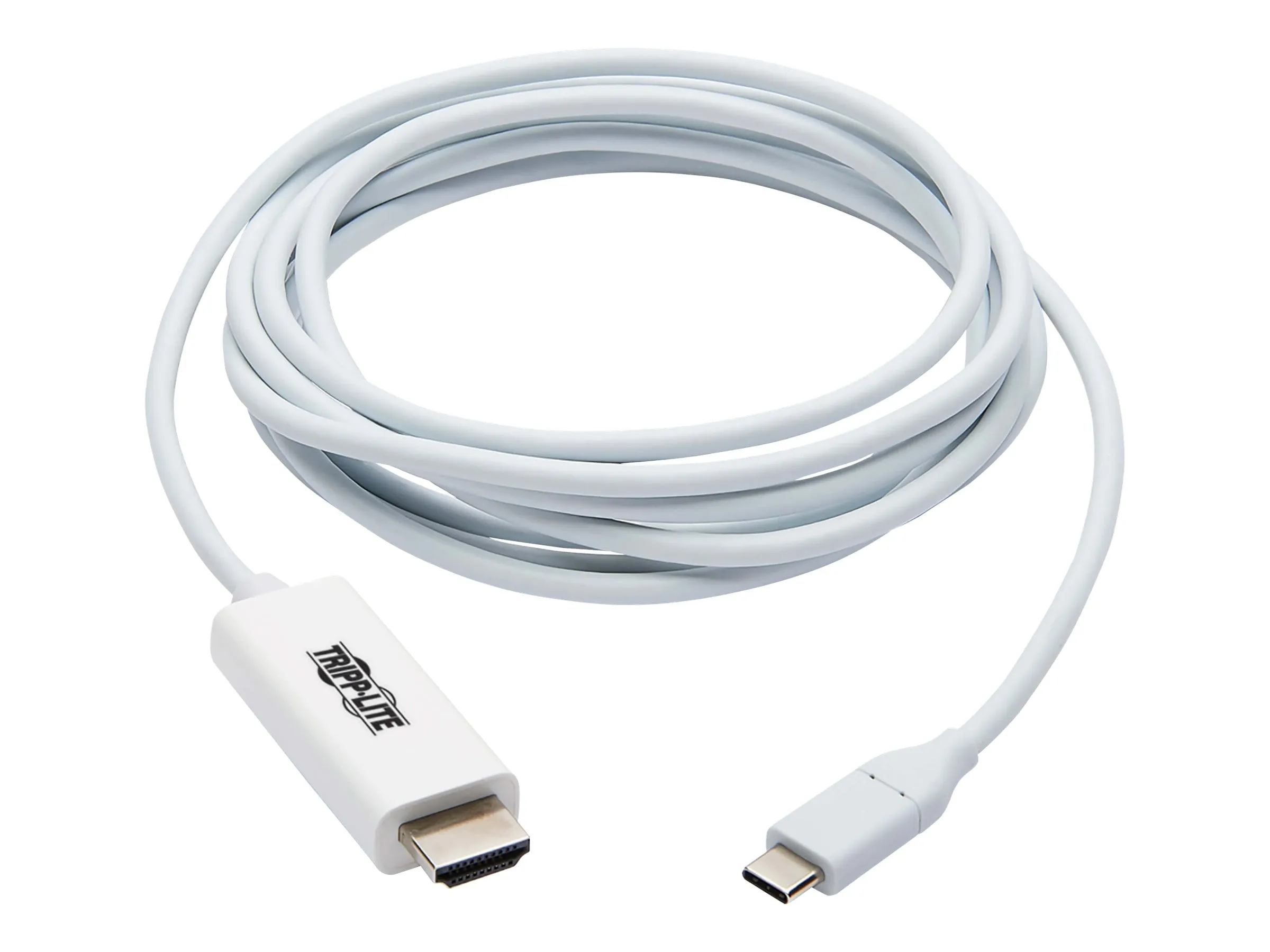 This Tripp Lite USB-C to HDMI Adapter Cable connects USB-C devices to HDMI displays, supporting resolutions up to 4K@60Hz. Measuring 9ft, the cable provides ample length for comfortable viewing and setup.