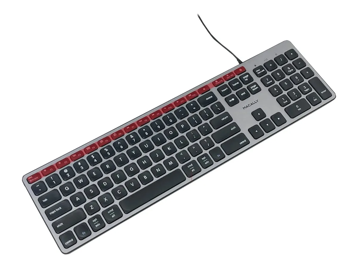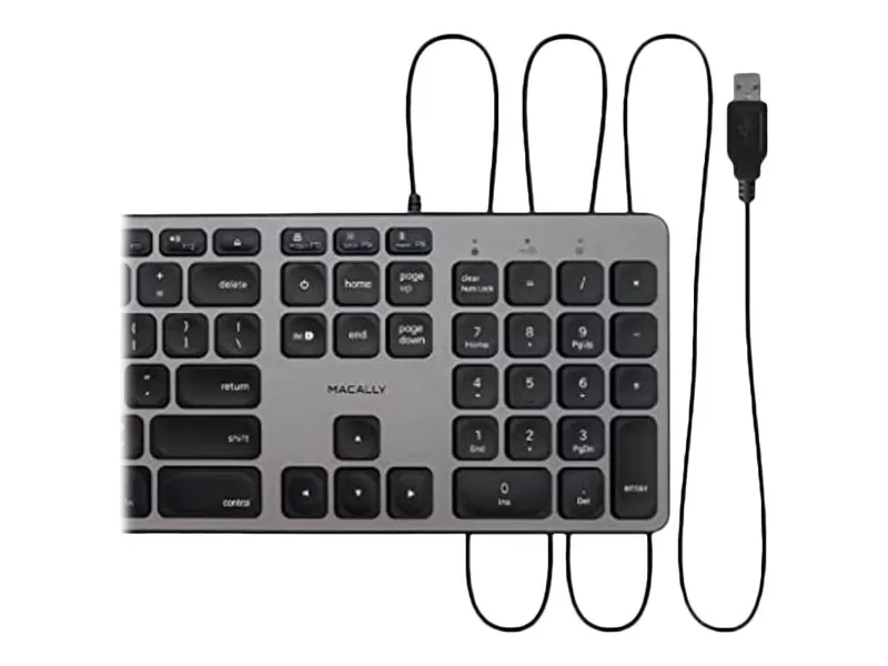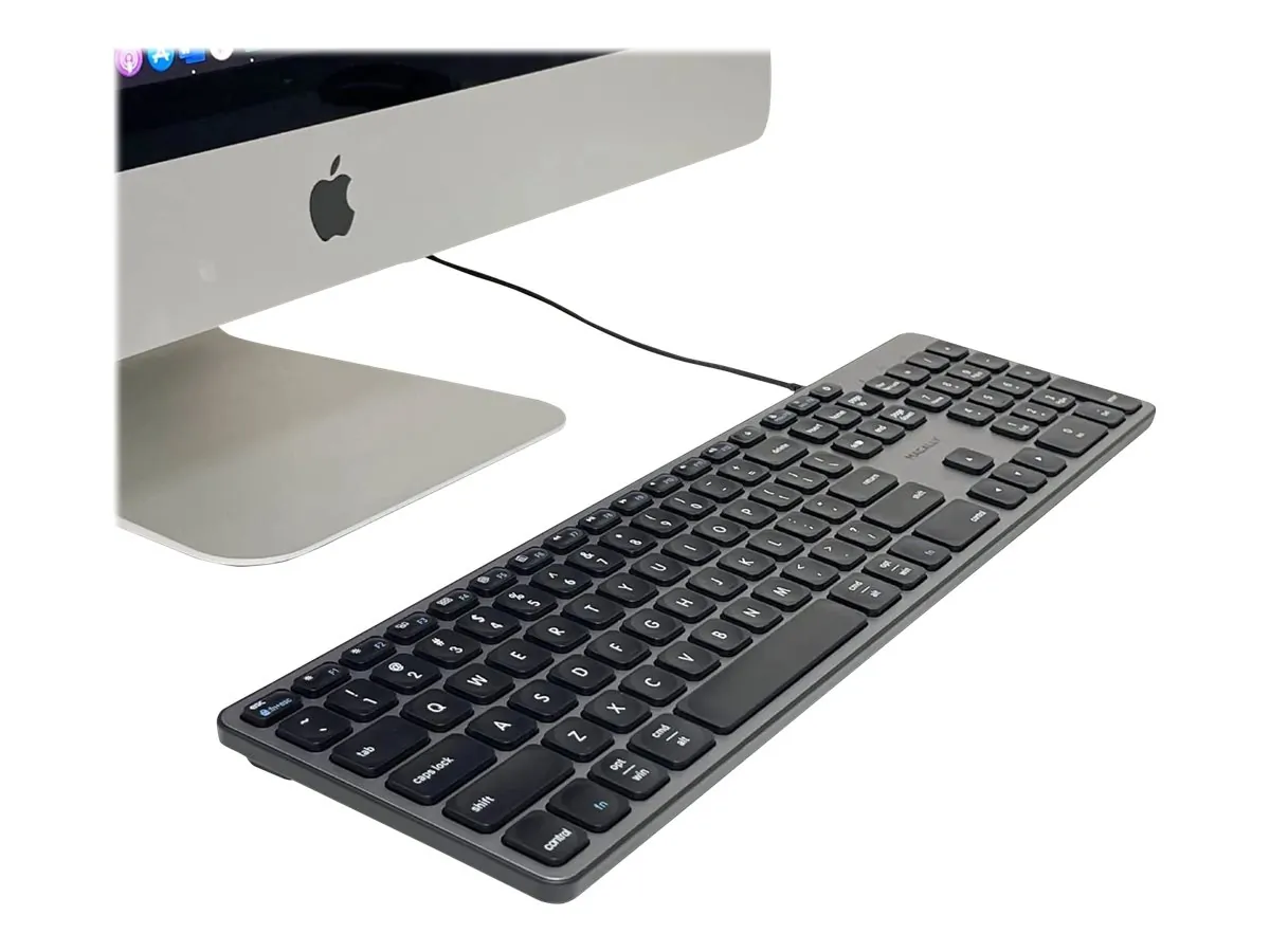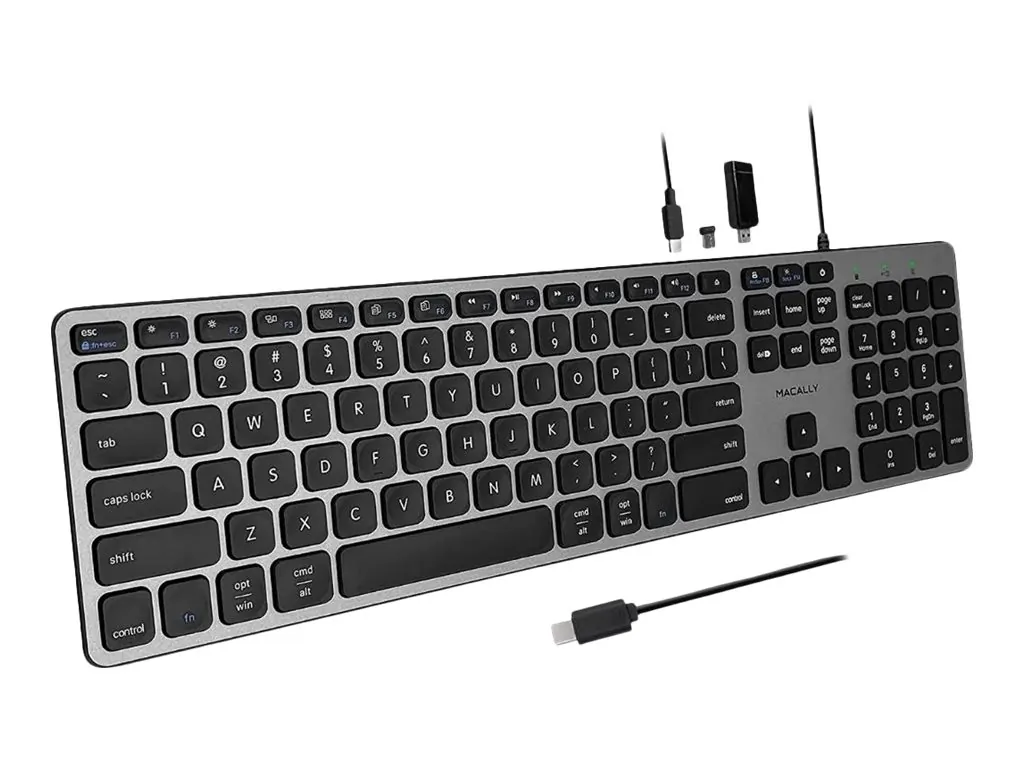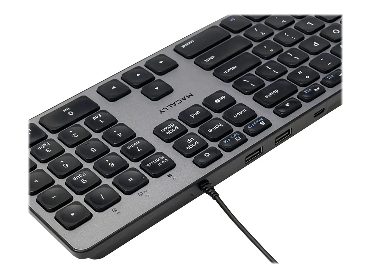 Enhance your workspace with this USB-C keyboard, designed specifically for both Mac and PC users. The keyboard features integrated USB-A and USB-C ports, allowing for seamless connections to your devices while maintaining a clutter-free environment.