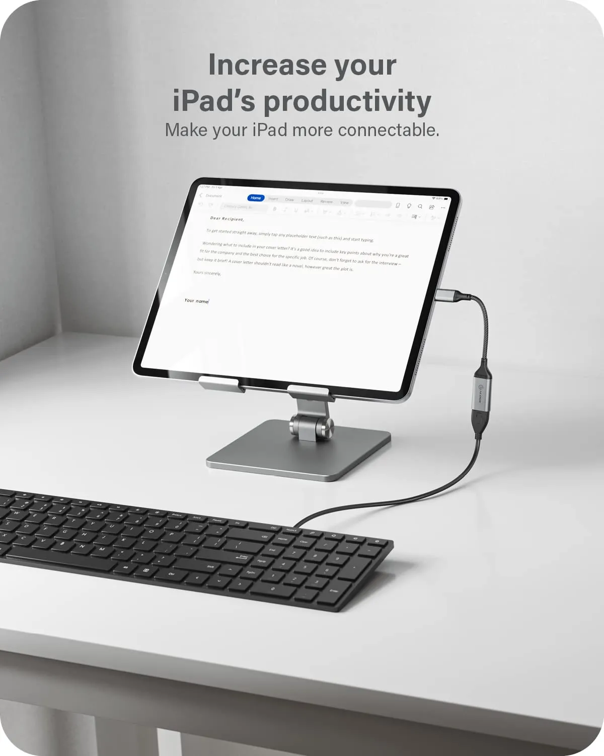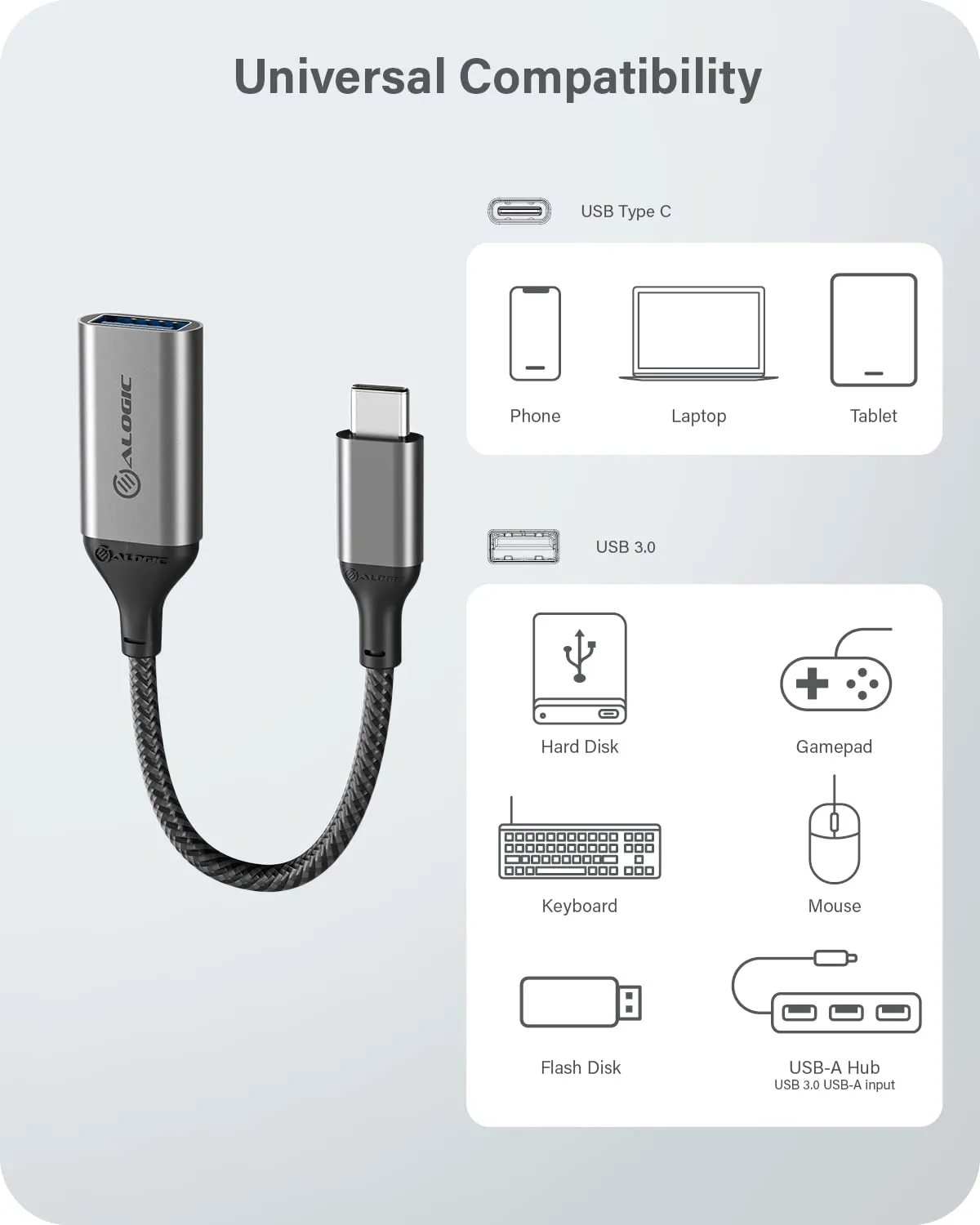 This 15CM USB-C to USB-A adapter in elegant Space Grey allows seamless connectivity between your USB-C devices and traditional USB-A ports. Perfect for charging, data transfer, and syncing, it combines style with practicality.