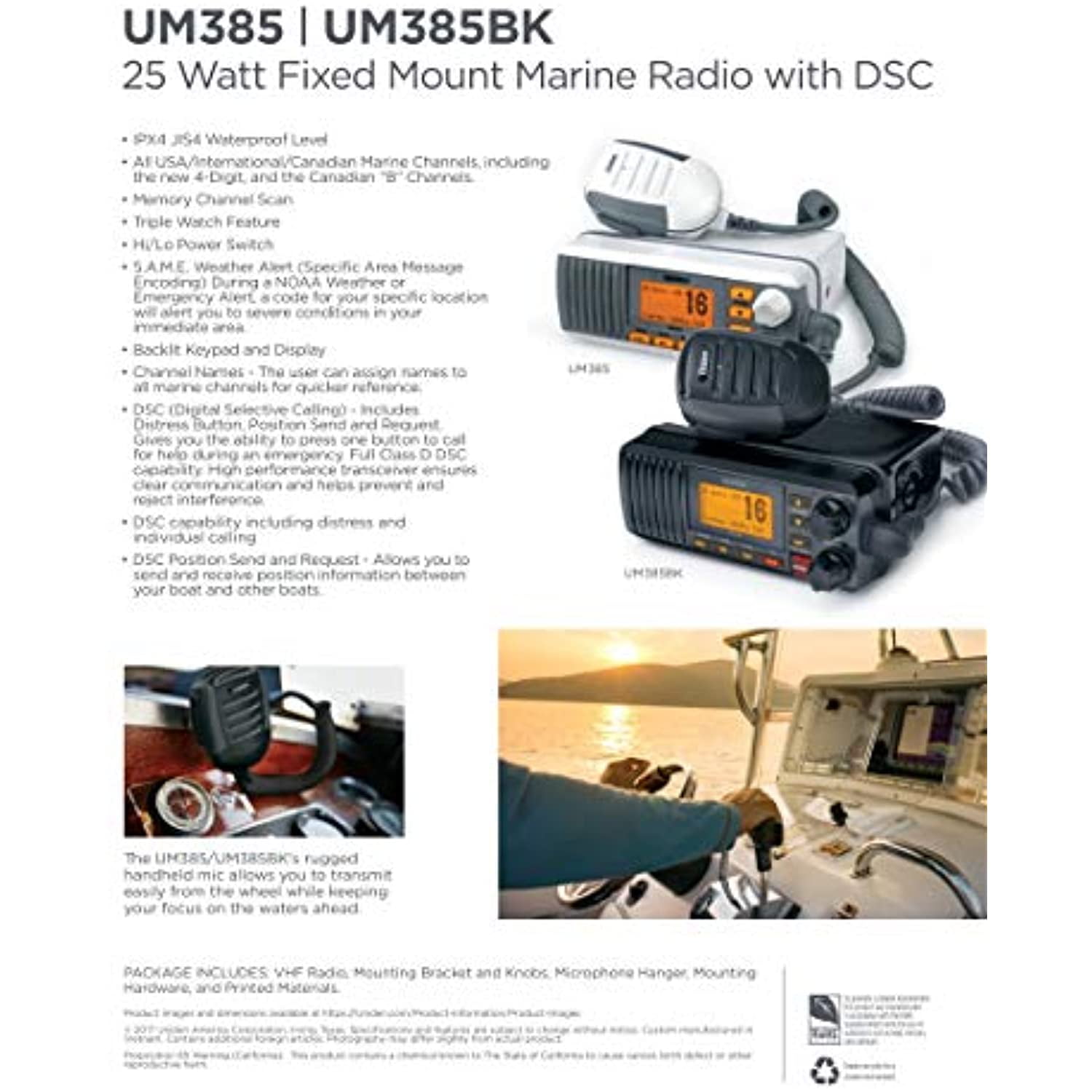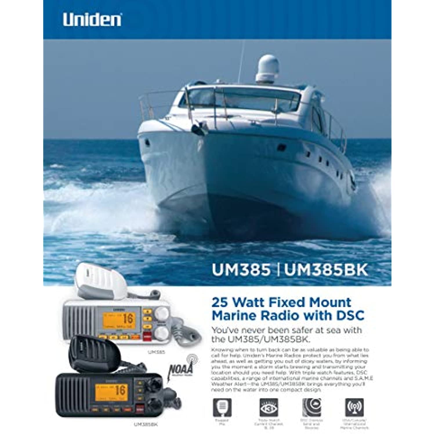 Uniden UM385 Black 25 Watt Fixed Mount Marine Radio with DSC