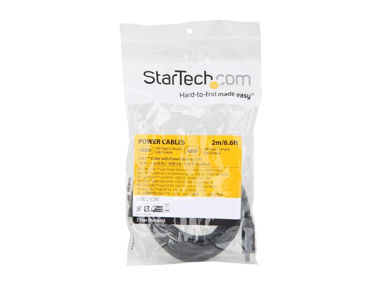 Upgrade your charging experience with the StarTech 6ft USB-C to USB-C Cable. This high-quality cable supports up to 5A power delivery, ensuring quick and efficient charging for your devices. Certified by USB-IF, it features a USB 2.0 connection for reliable data transfer while maintaining a sleek design to complement your tech setup.