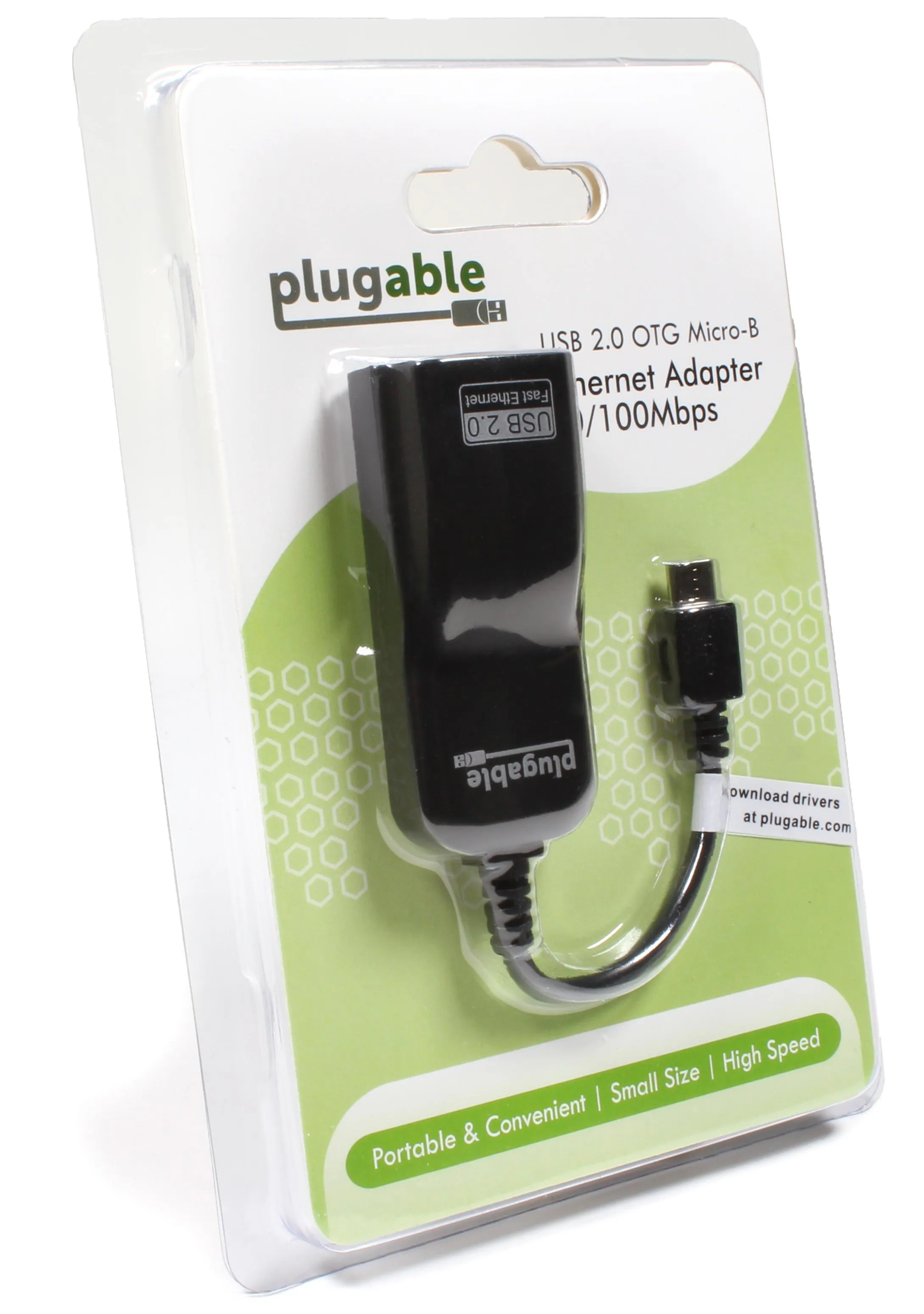 The Plugable USB 2.0 OTG Micro-B to Ethernet Adapter provides a stable wired internet connection for Android devices that support USB OTG (On-The-Go). This adapter allows you to connect your device directly to an Ethernet network, ensuring faster and more reliable internet access compared to Wi-Fi.