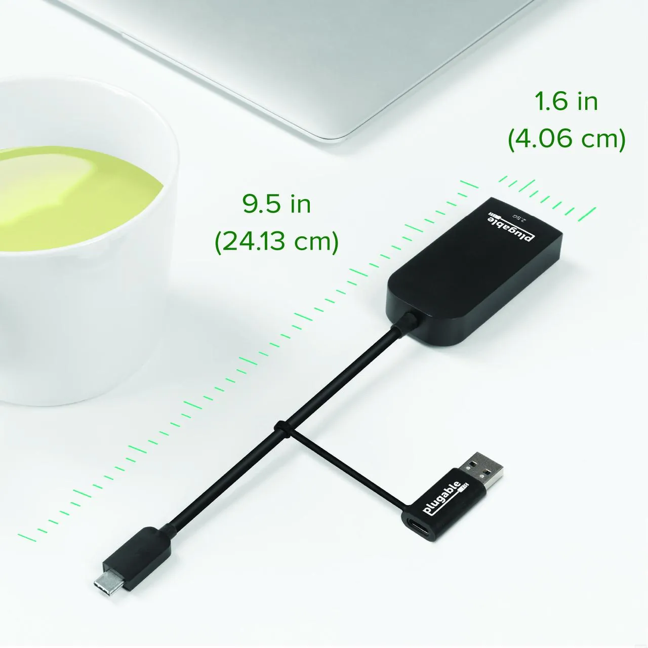 The Plugable USB-C & USB 2.5G Ethernet Adapter is a versatile and high-speed solution for connecting your laptop or desktop to a 2.5 Gigabit Ethernet network. Its compact design ensures portability, making it perfect for on-the-go professionals and remote workers.