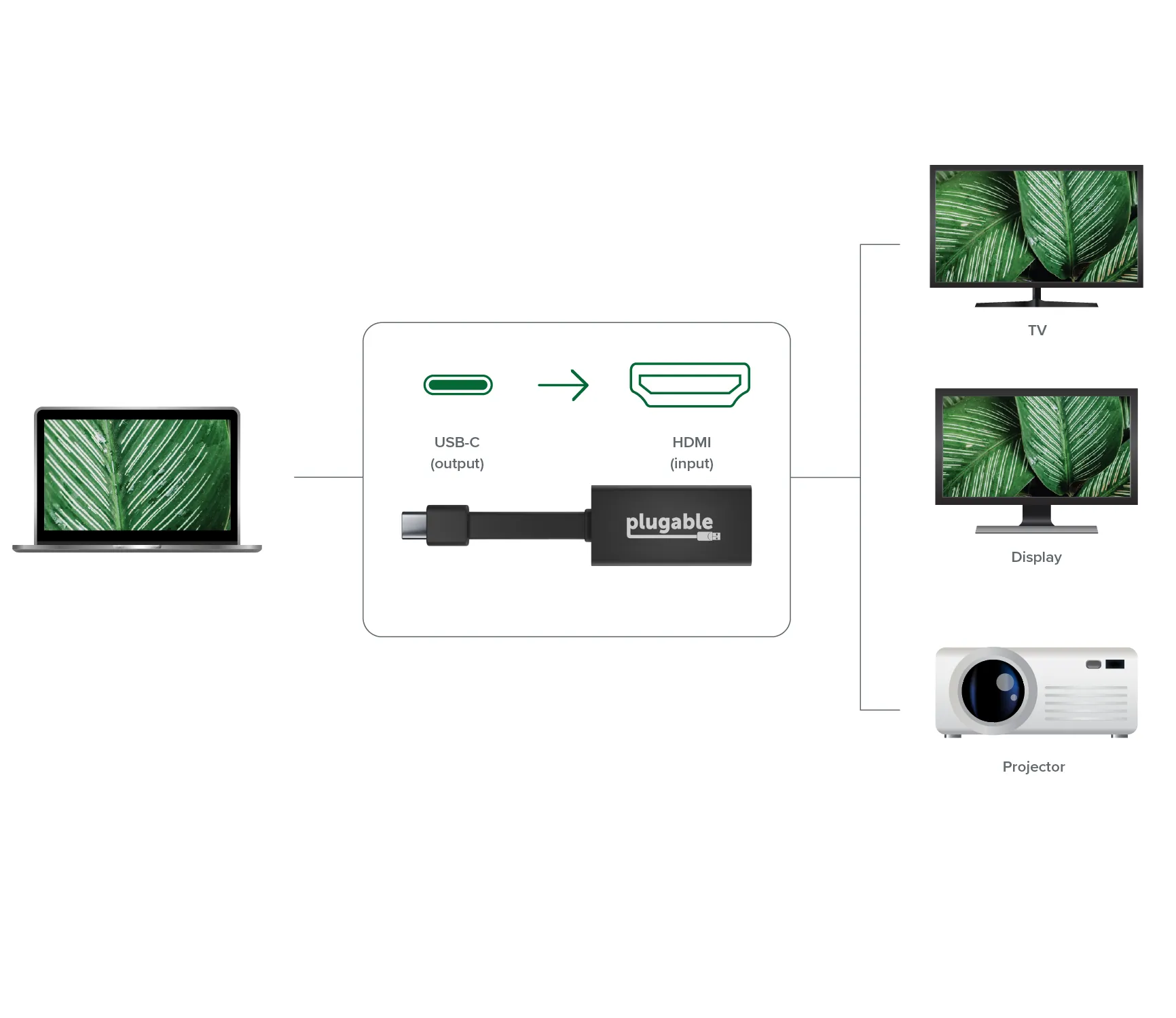 The Plugable USB-C to HDMI Adapter allows you to connect your USB-C devices to an HDMI display with support for stunning 4K resolution at 30Hz. This compact and portable adapter is perfect for presentations, gaming, or streaming your favorite content on bigger screens.