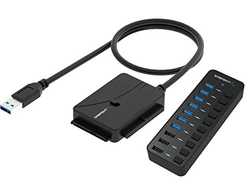 The Sabrent USB 3.0 to SSD/SATA/IDE Adapter allows you to connect and access your 2.5" or 3.5" SATA and IDE hard drives quickly and easily. This versatile adapter is perfect for data recovery, backups, and transferring files from old hard drives.