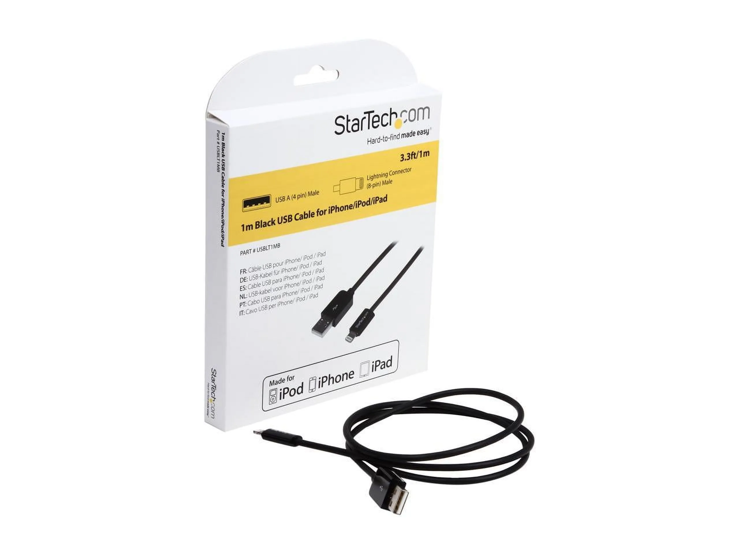 Charge & Sync your Apple Lightning devices. Apple MFi certified. Standard 1m length makes it a perfect replacement for damaged or misplaced Apple Lightning cables. Black 1m (3') Lightning Cable. Compliments your black Apple mobile devices. Compatible with Apple iPhone 6, iPhone 6 Plus, iPhone 5, iPhone 5c, iPhone 5s, iPad Air, iPad 4, iPad mini and iPod 5th gen.
