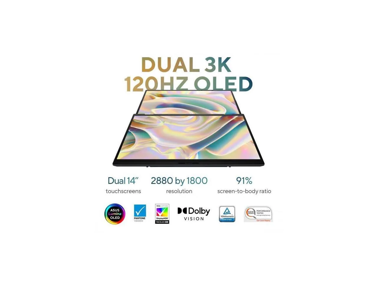 Experience the power and versatility of the ASUS Zenbook Duo, featuring a stunning 14.0 WQXGA+ (WQ+) touchscreen display. Powered by the Core Ultra 9 285H processor and equipped with 32GB of RAM and a 1TB SSD, this laptop is designed to handle multitasking and demanding applications with ease.