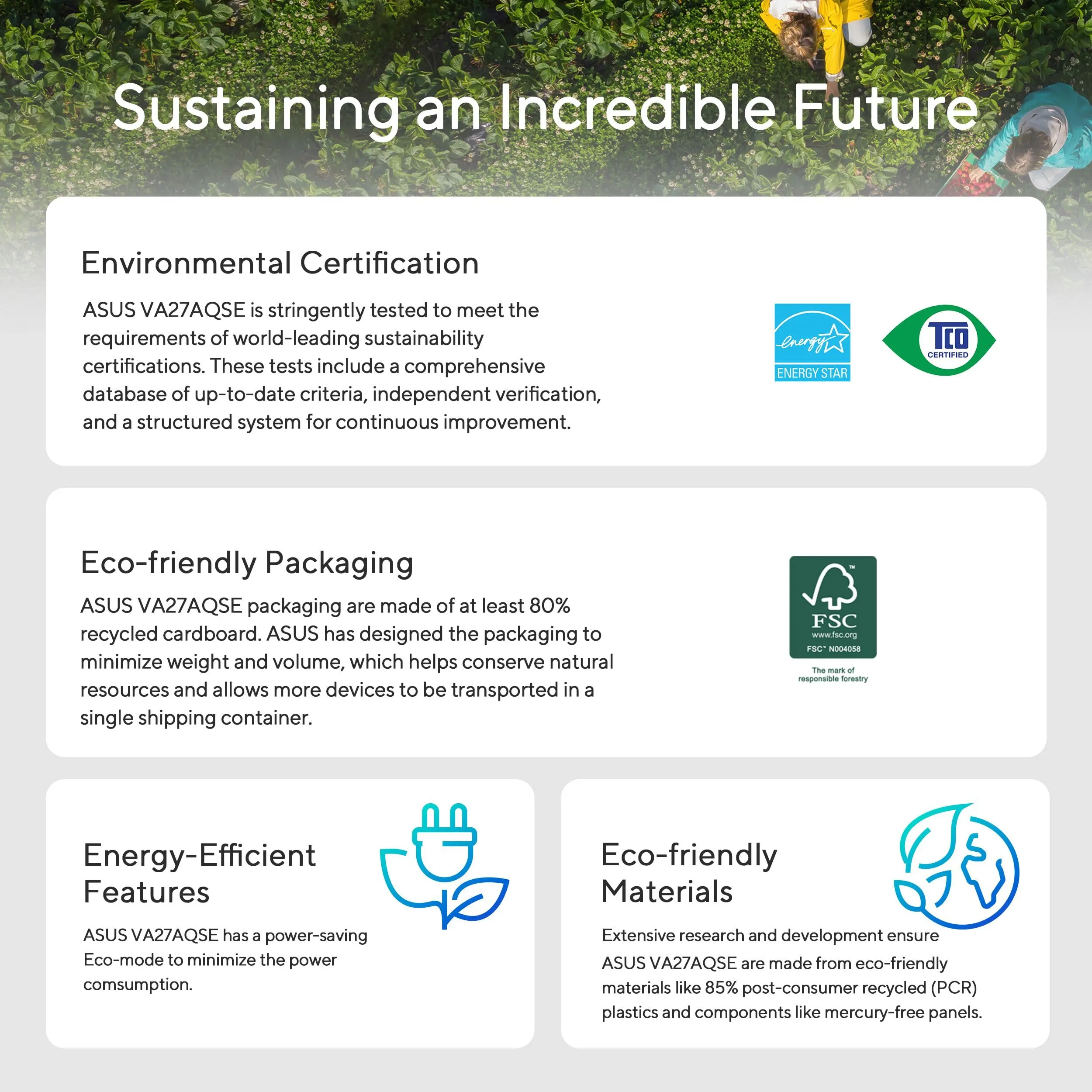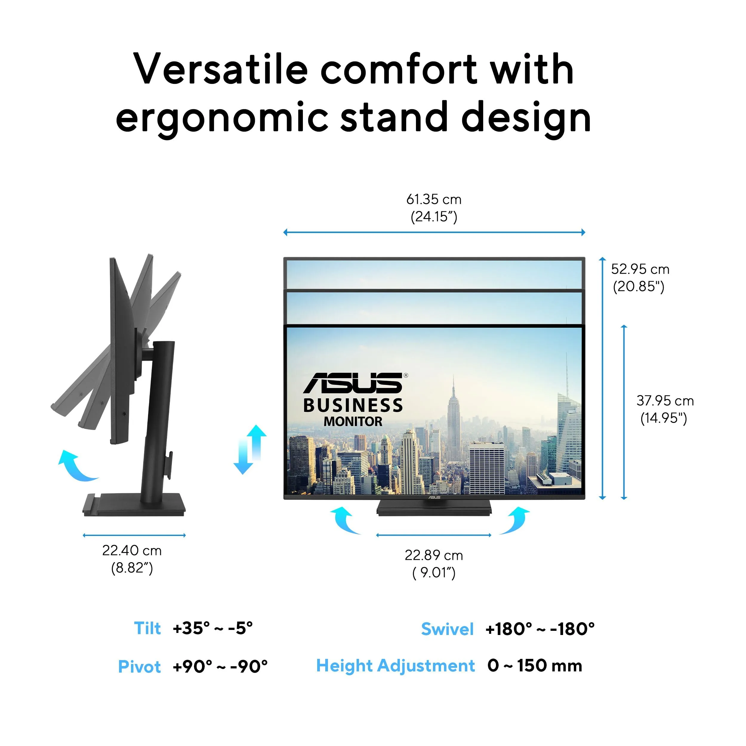 ASUS 27 1440P Business Monitor VA27AQSE IPS, QHD, 99 sRGB, Frameless, HDMI, DisplayPort, VGA, 1ms, Speakers, Low Blue Light, Flicker Free, Ergonomic Design, VESA Wall Mountable, 3 yr warranty
